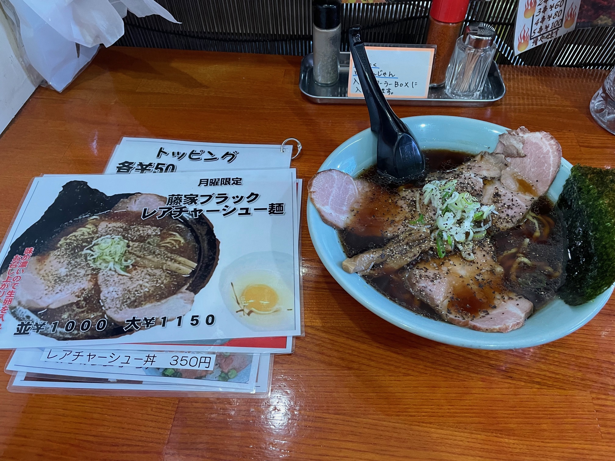 休みの月曜日に来店。月曜日は家系ラーメンの日だが「藤家ブラック」なるものがあったので注文。
