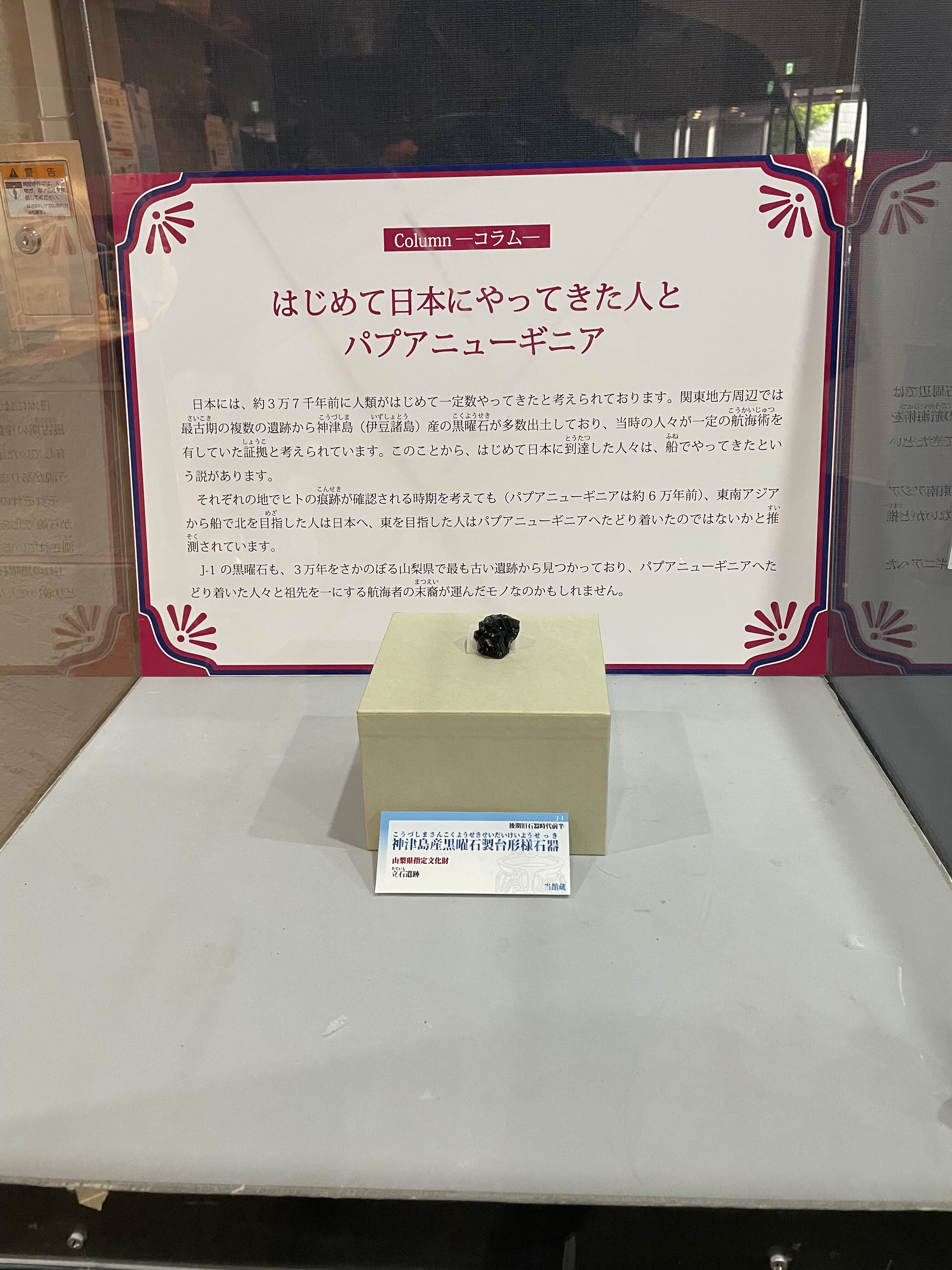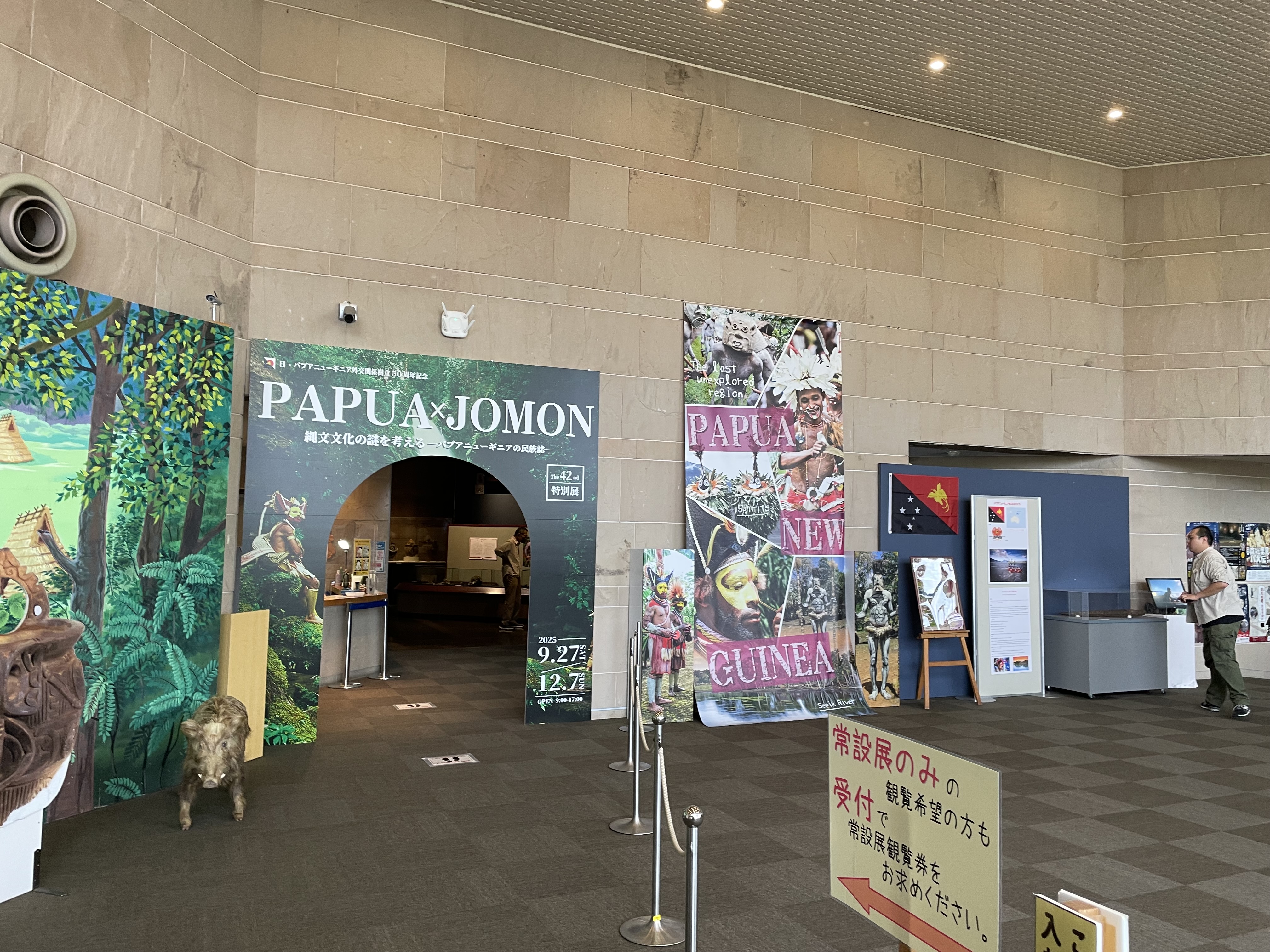 嫁さんが急に休みになった土曜日、どこかへと思うががなかなかいいところがない・・・とりあえず犬を連れて、富士五湖方面へ向けて出発。甲府南ICを降りたところであまり暑くないのをいいことに近くの山梨考古博物館へ。パプアニューギニアと縄文の特別展を開催中だった。