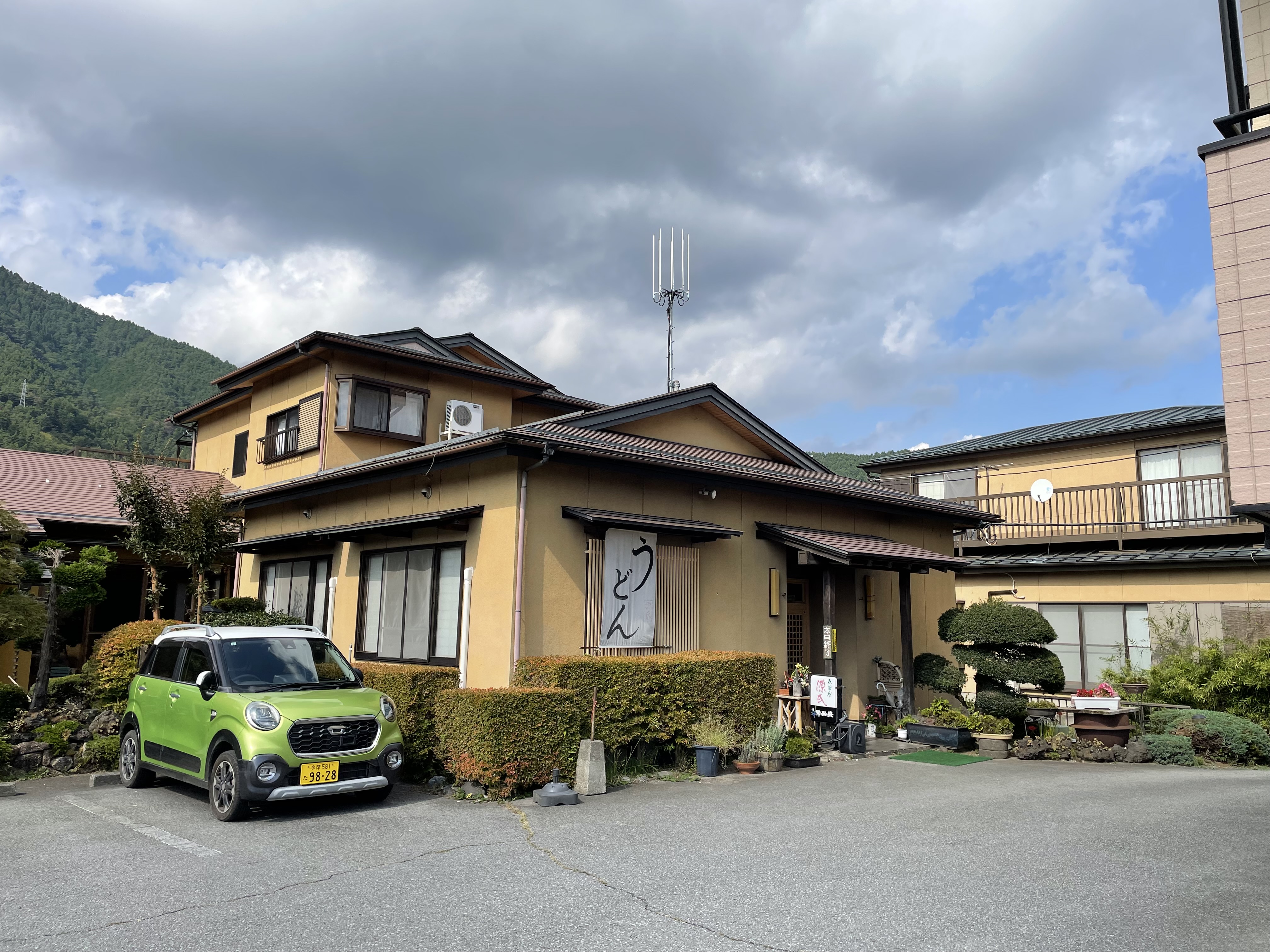ドラマ、ホットスポットのロケ地のホテルなどを見て富士吉田でうどんの昼食。