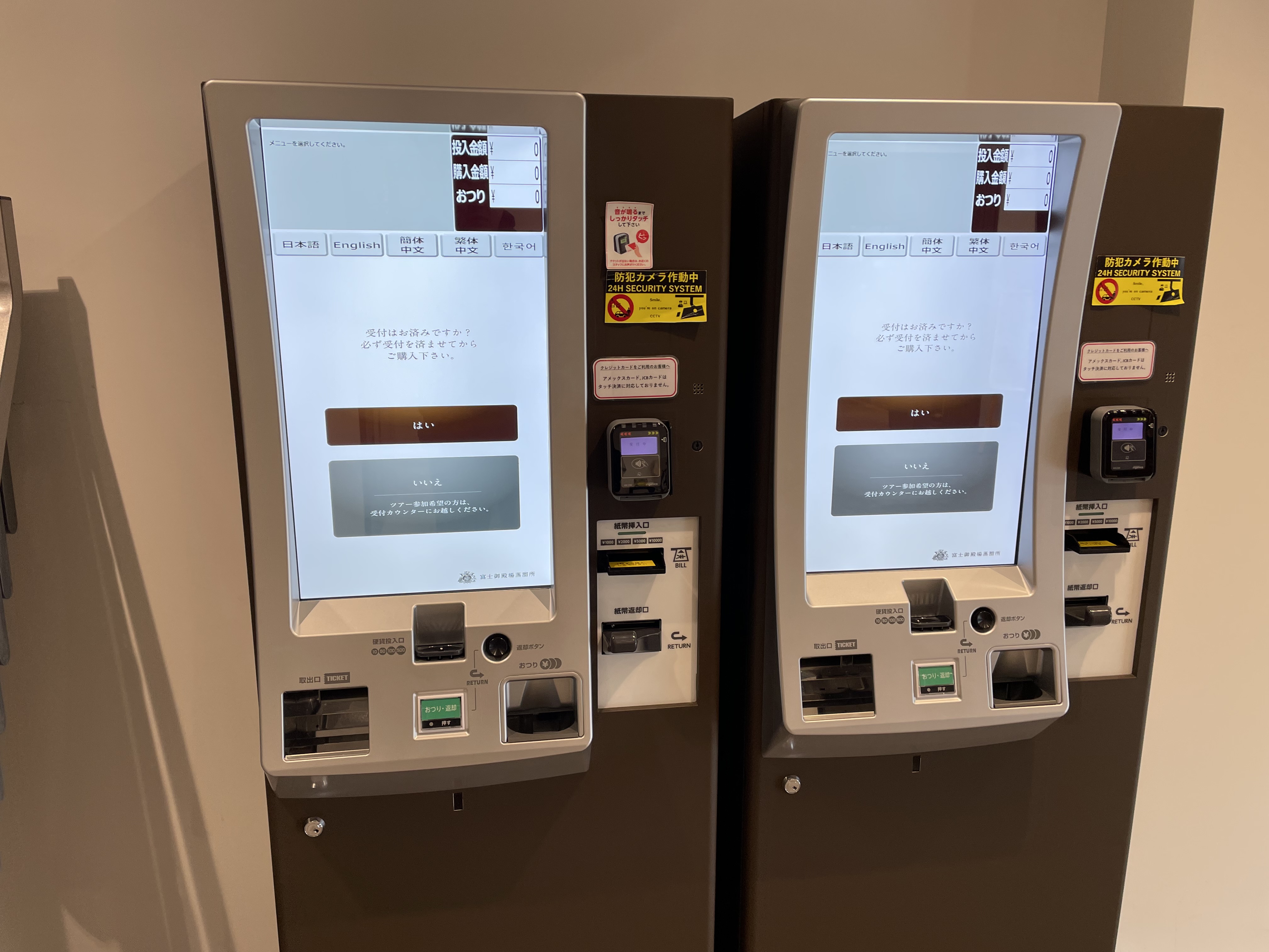 自宅から河口湖経由で約2時間。予約枠はまだ空いていて10時半のツアーは15人くらい…