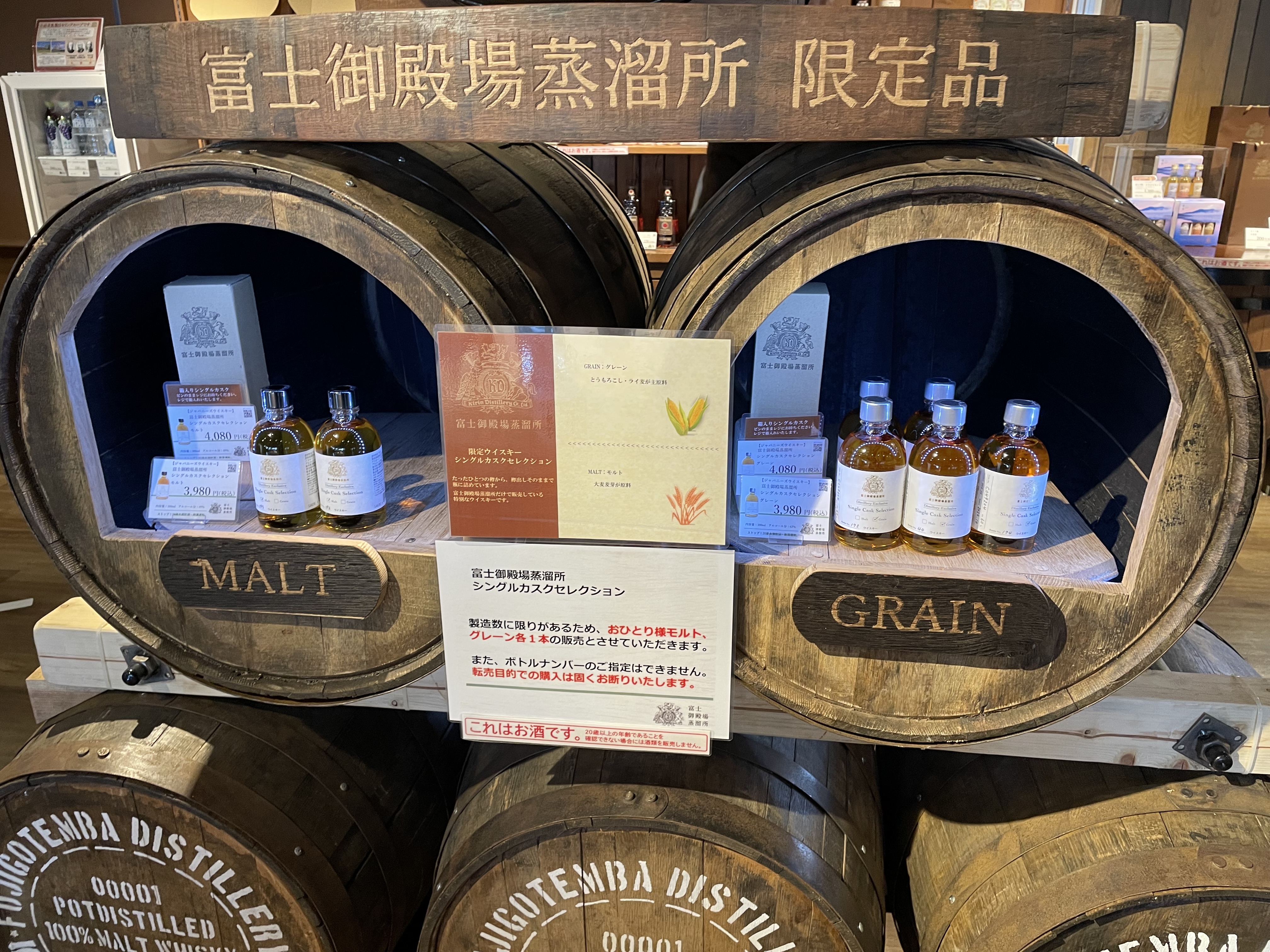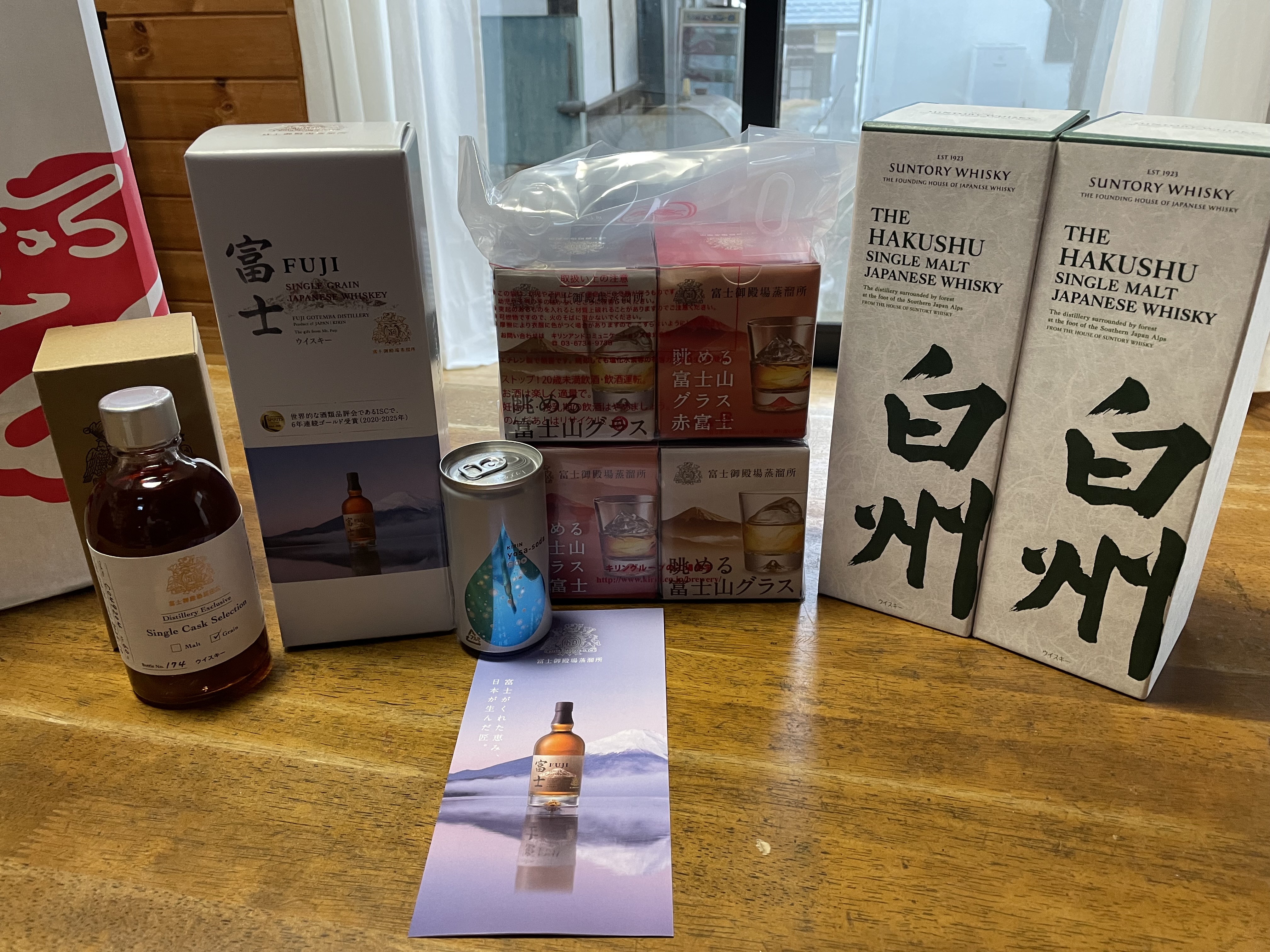 富士山のグラスと蒸留所限定のシングルカスクのグレーンなどを買って、御殿場市内にある「虎や工房」によって、富士吉田でうどん、サントリー白州蒸留所で白州ノンエイジを買って帰りました。キリンに比べ白州は人が多い・・・