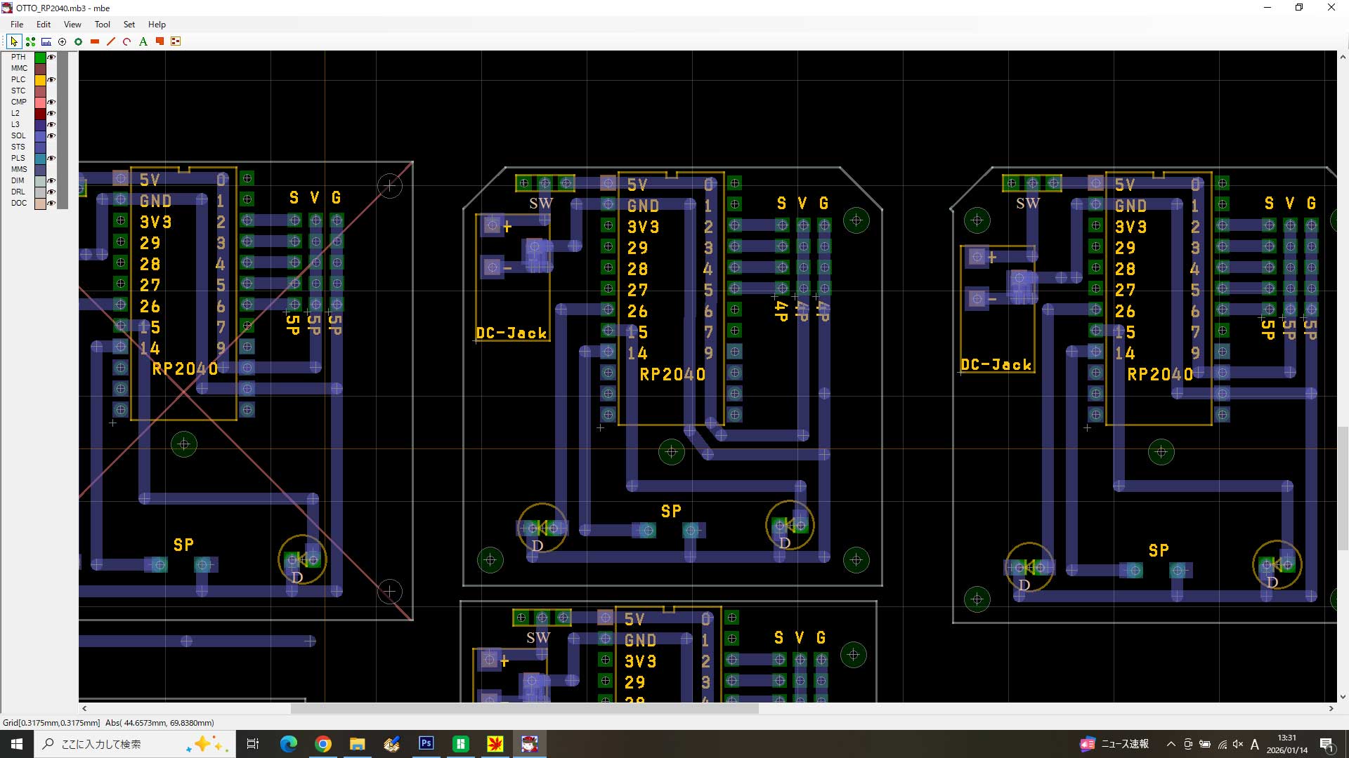 頭部に収めるように55mmサイズの基板を加工