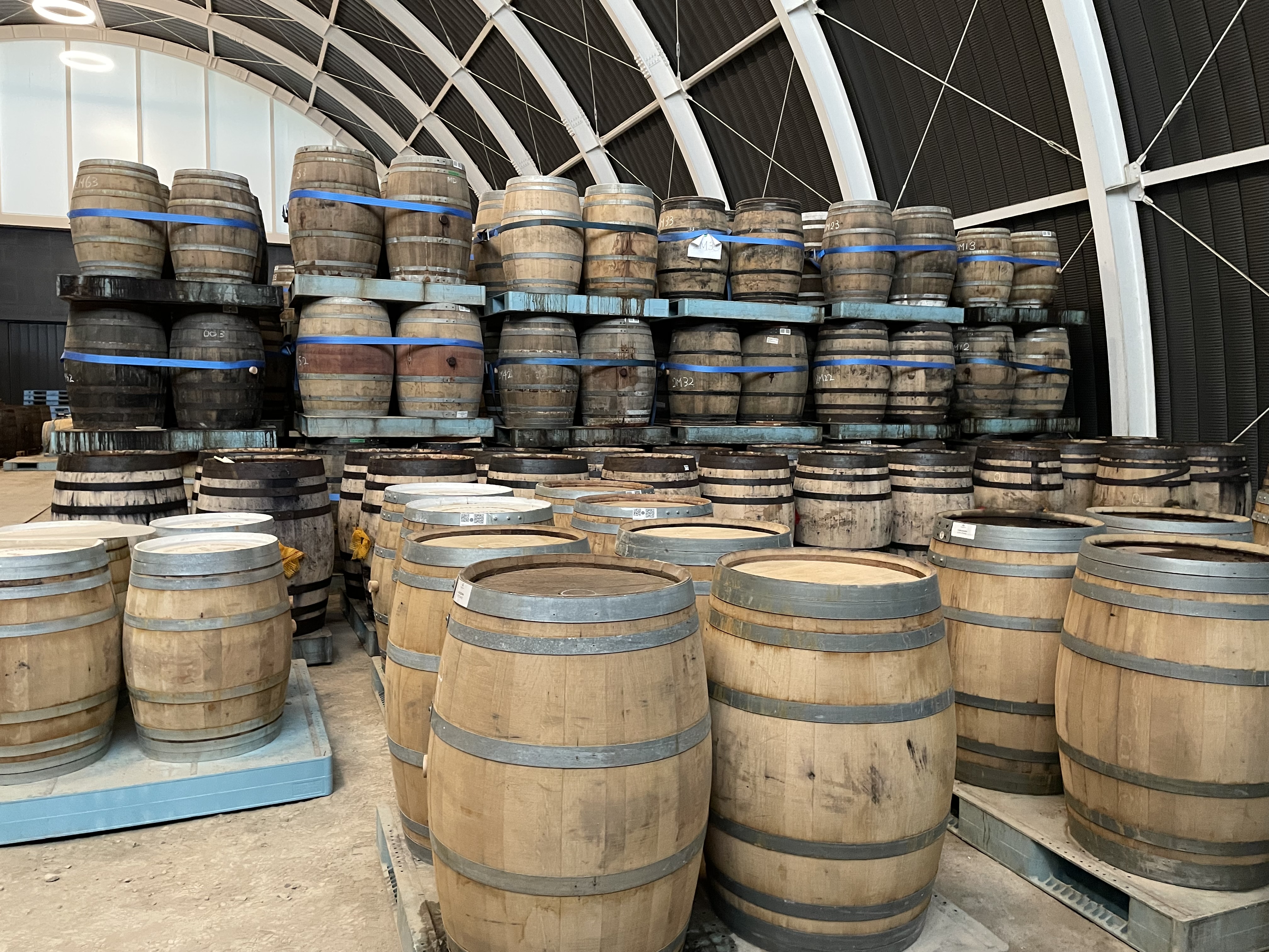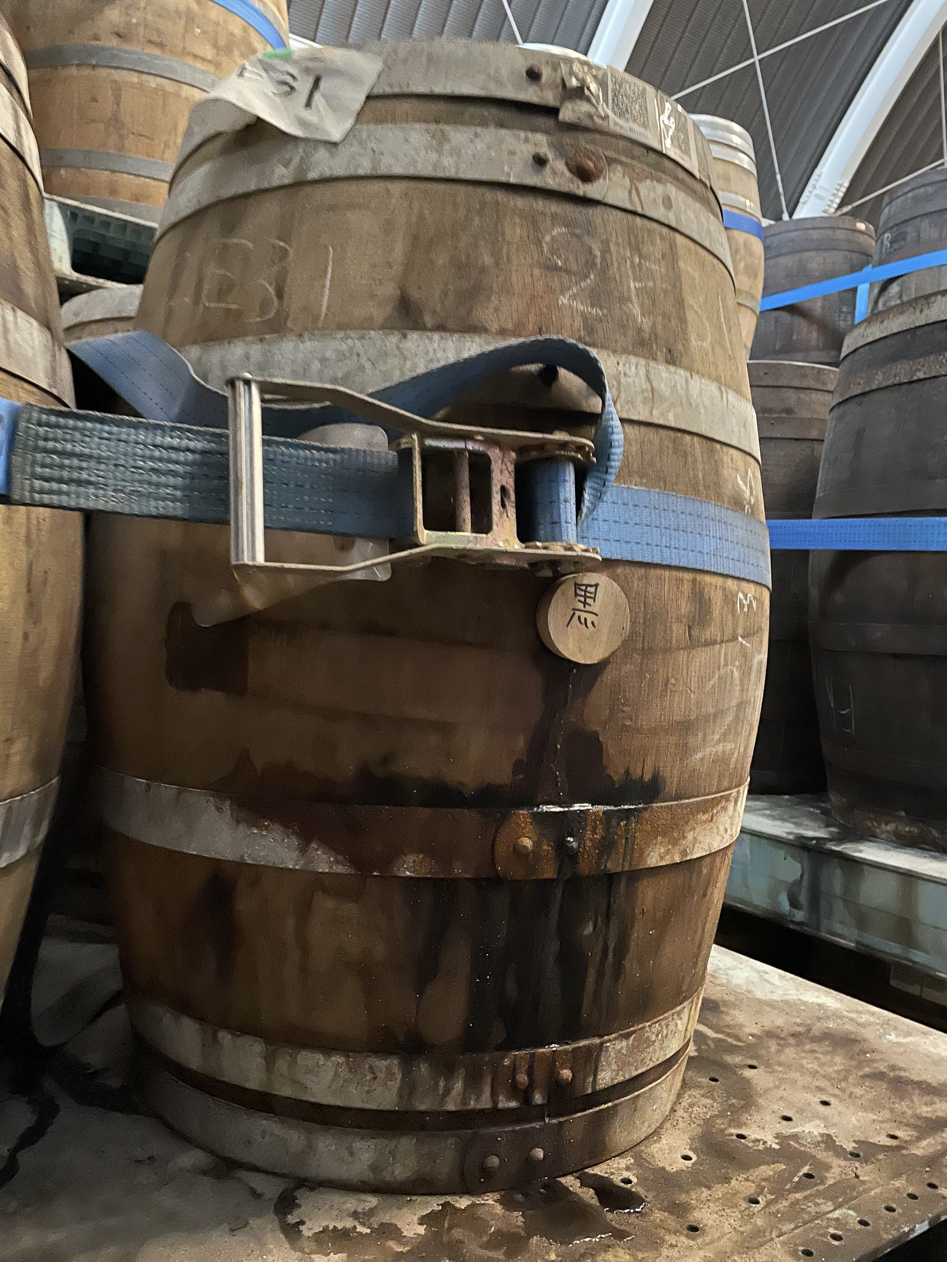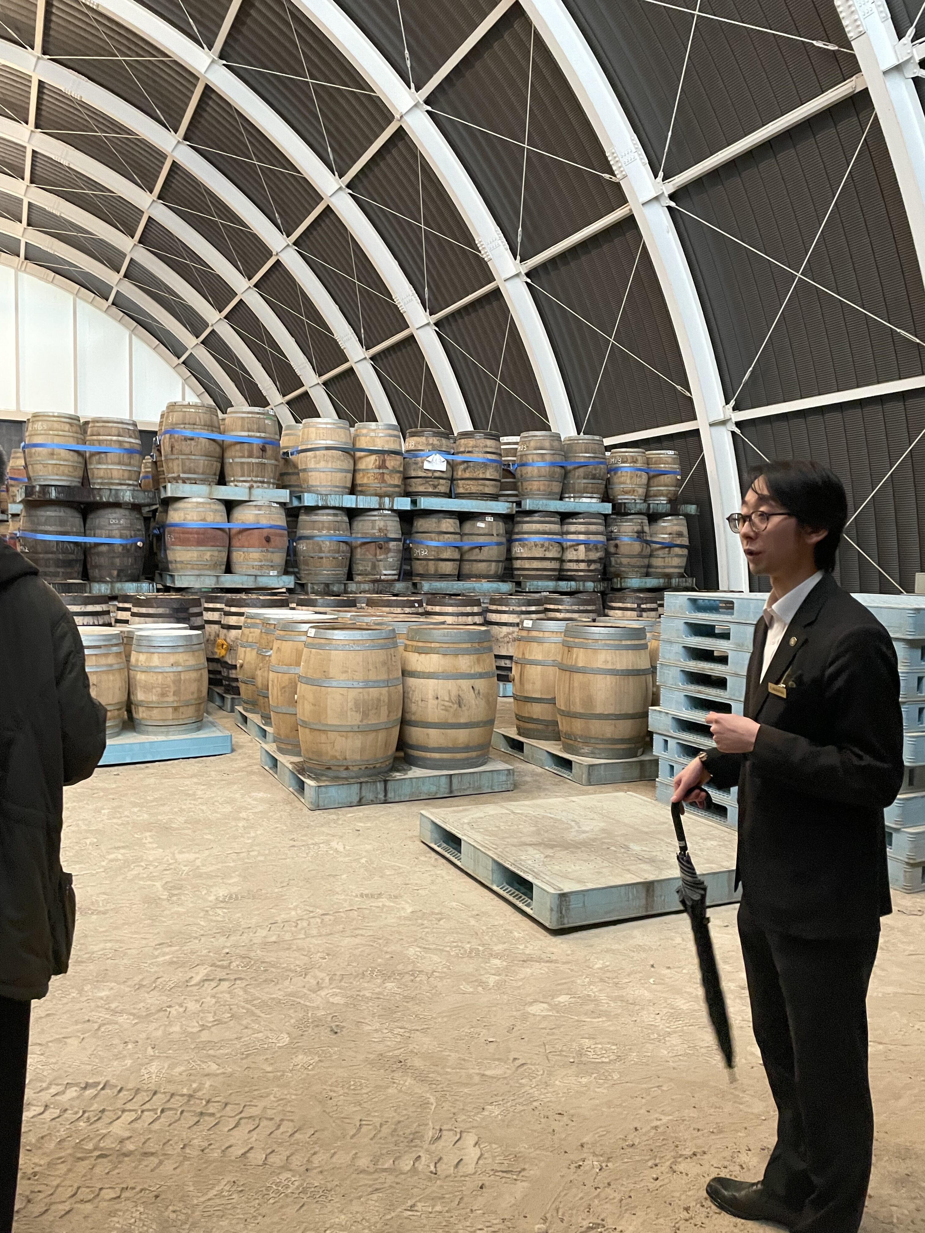 工場内を一通り見た後はニューポットのハイボール風と桜樽貯蔵の若いウイスキーを試飲。桜の香りがいい!その後、熟成庫の見学。揮発するウイスキーの匂いがすごかった。いよいよ今年の冬から出荷が始まるが、すでに予約で完売・・・
