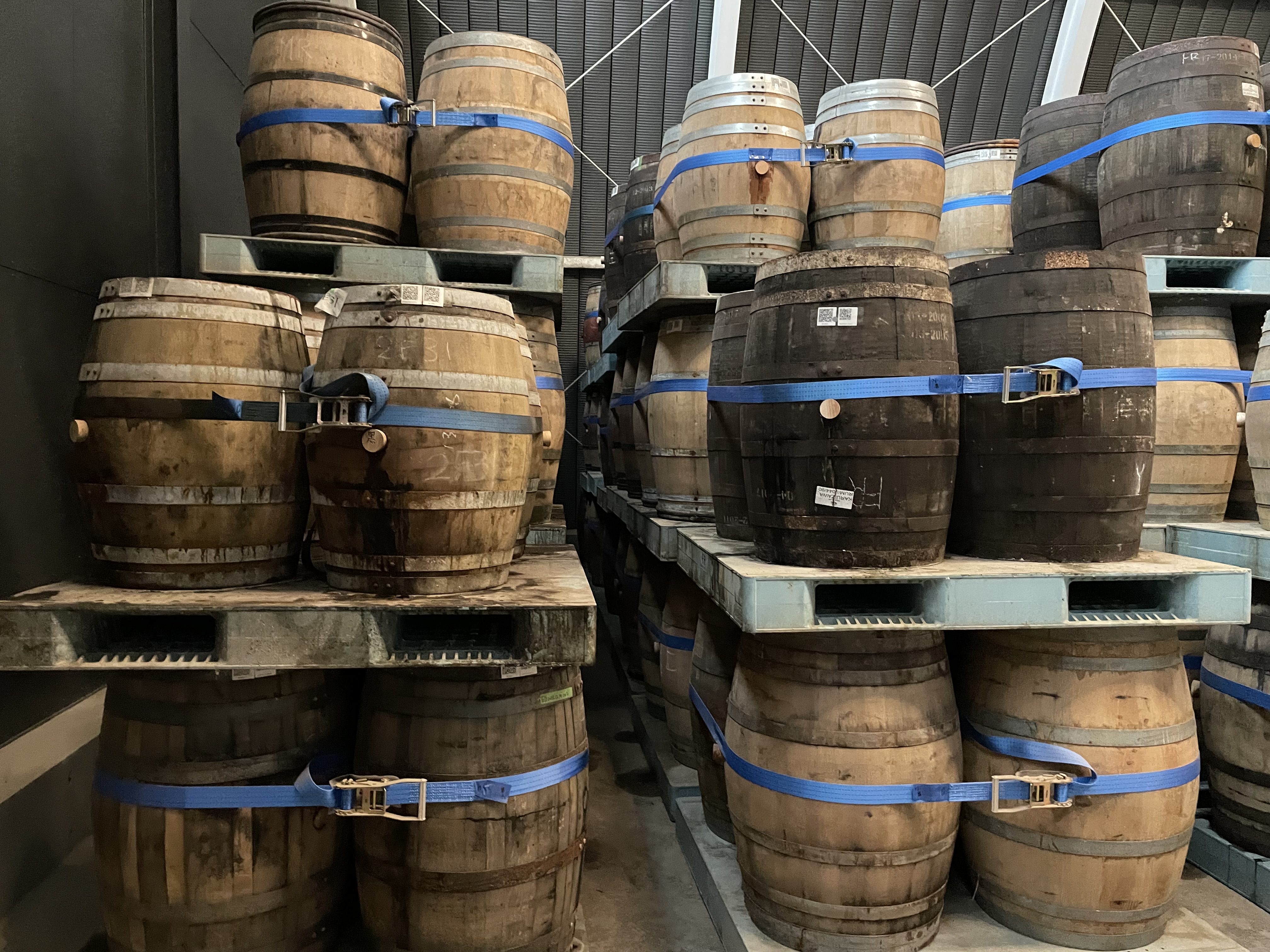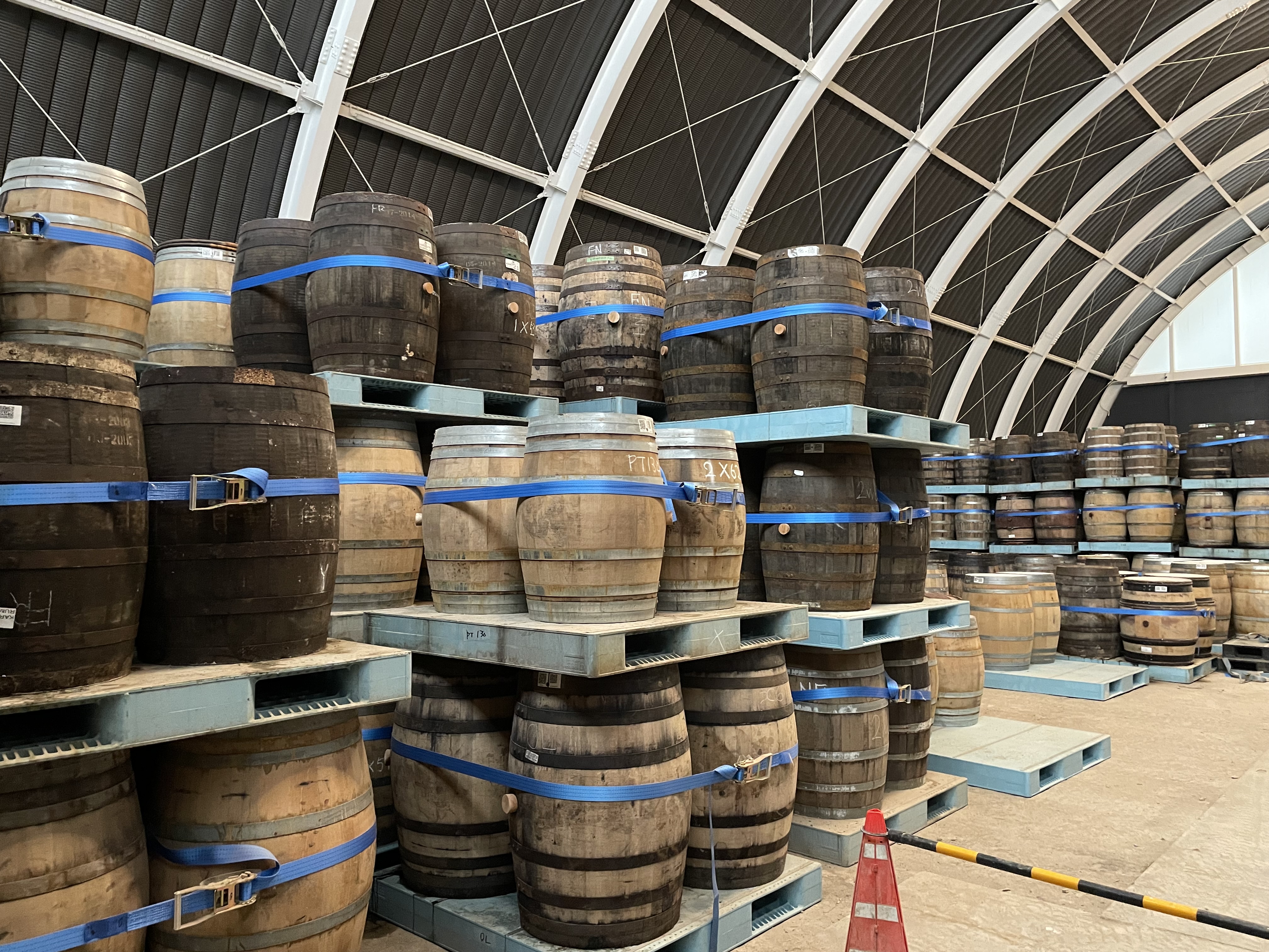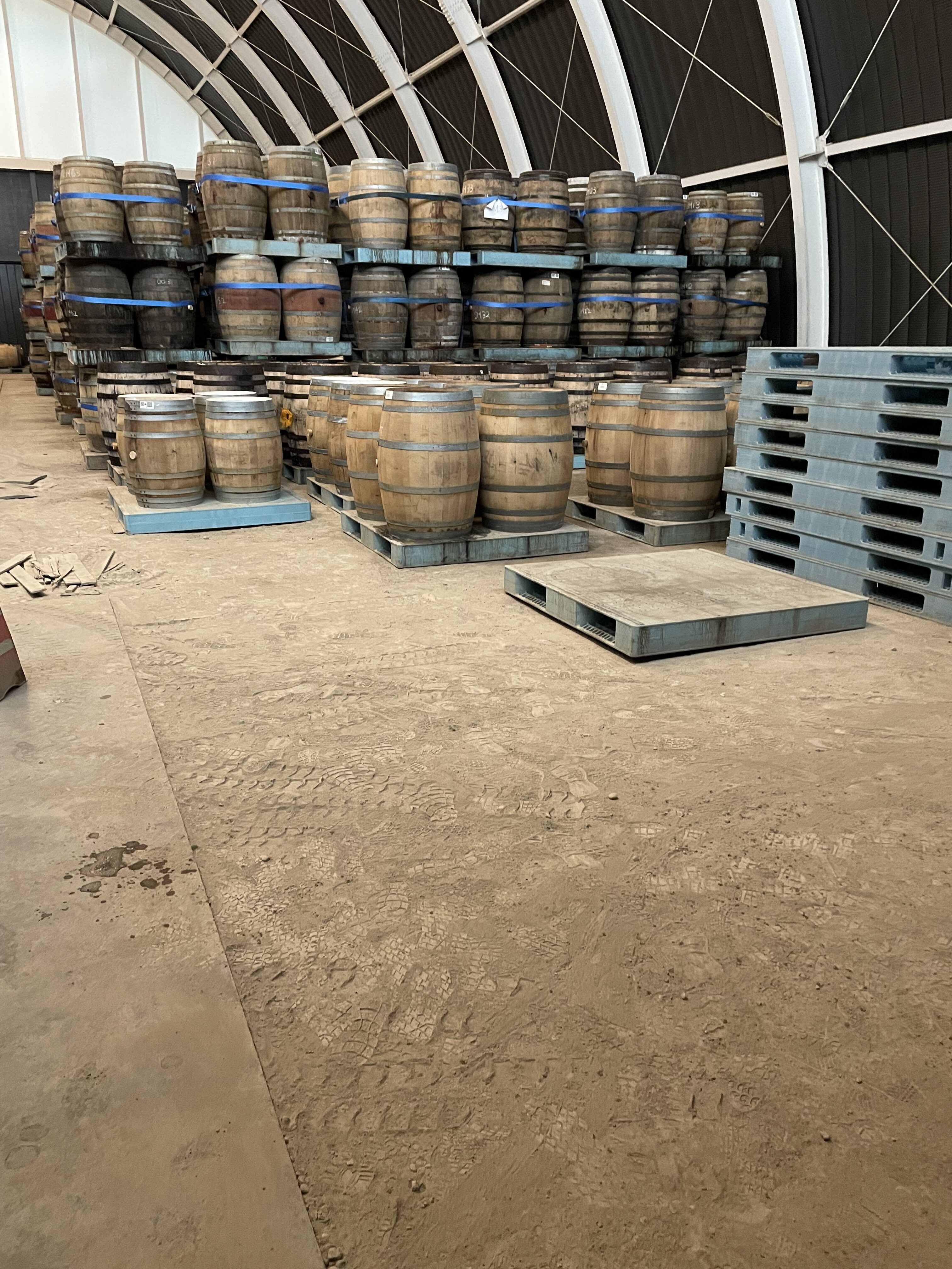 工場内を一通り見た後はニューポットのハイボール風と桜樽貯蔵の若いウイスキーを試飲。桜の香りがいい!その後、熟成庫の見学。揮発するウイスキーの匂いがすごかった。いよいよ今年の冬から出荷が始まるが、すでに予約で完売・・・