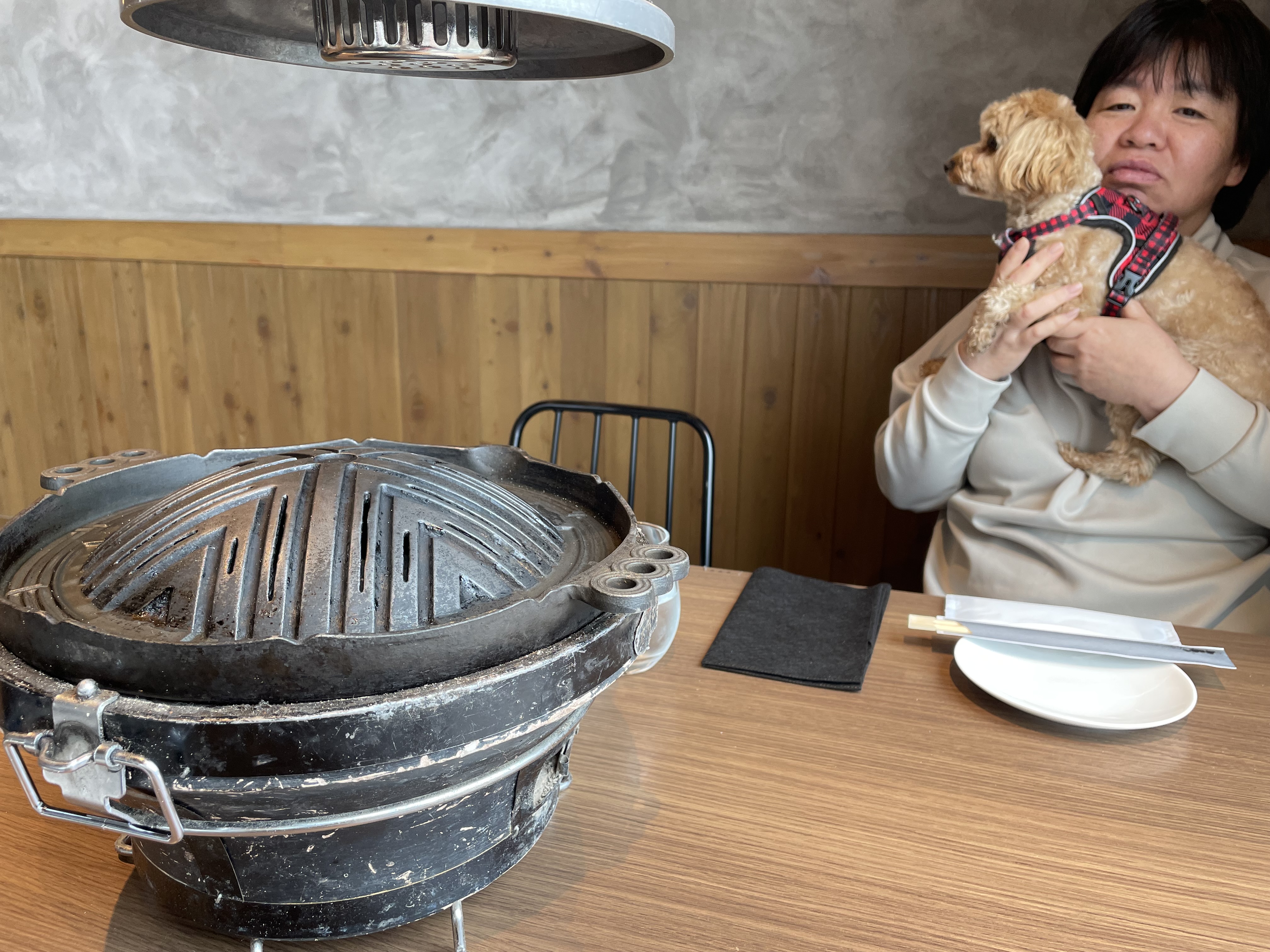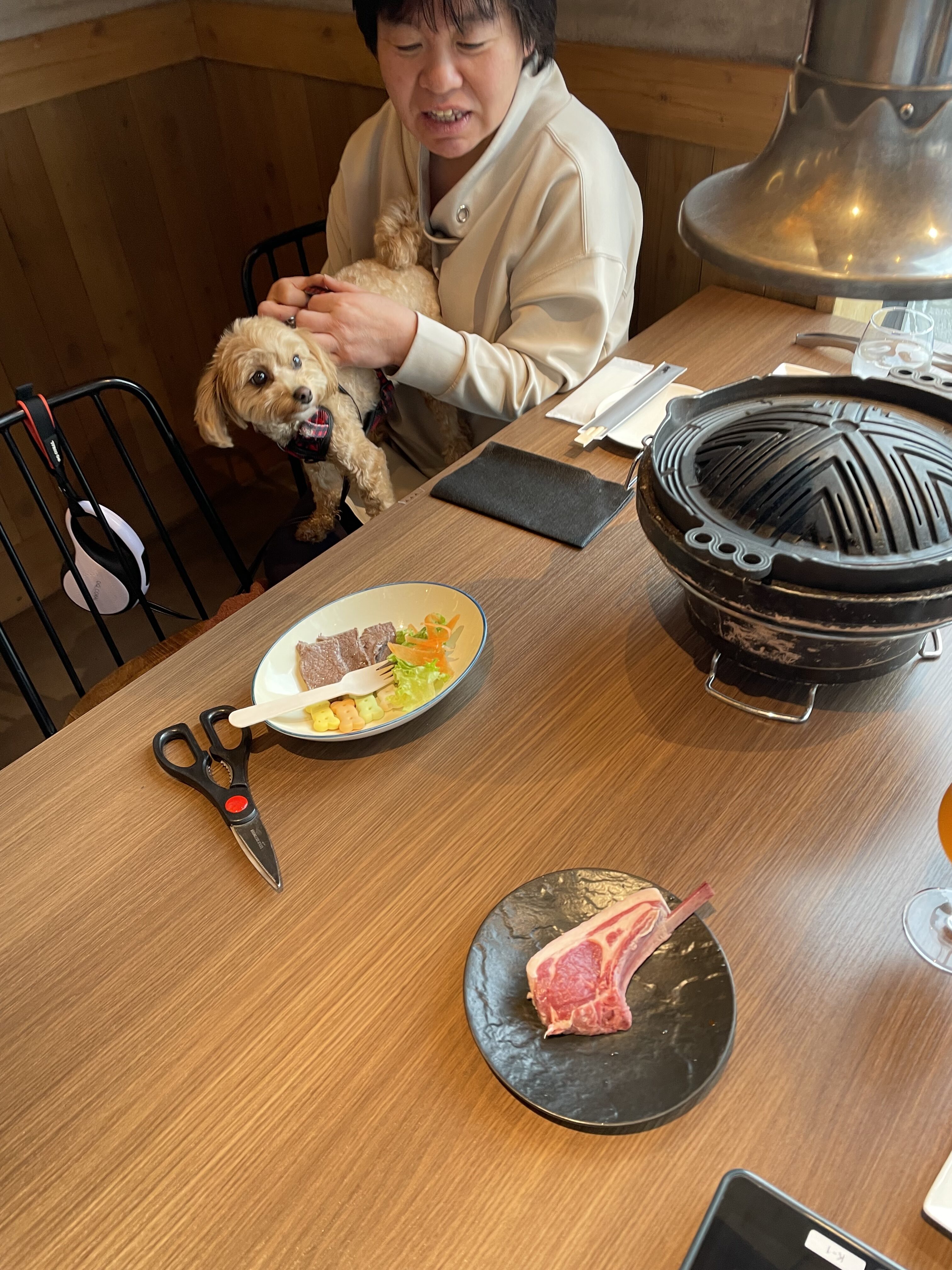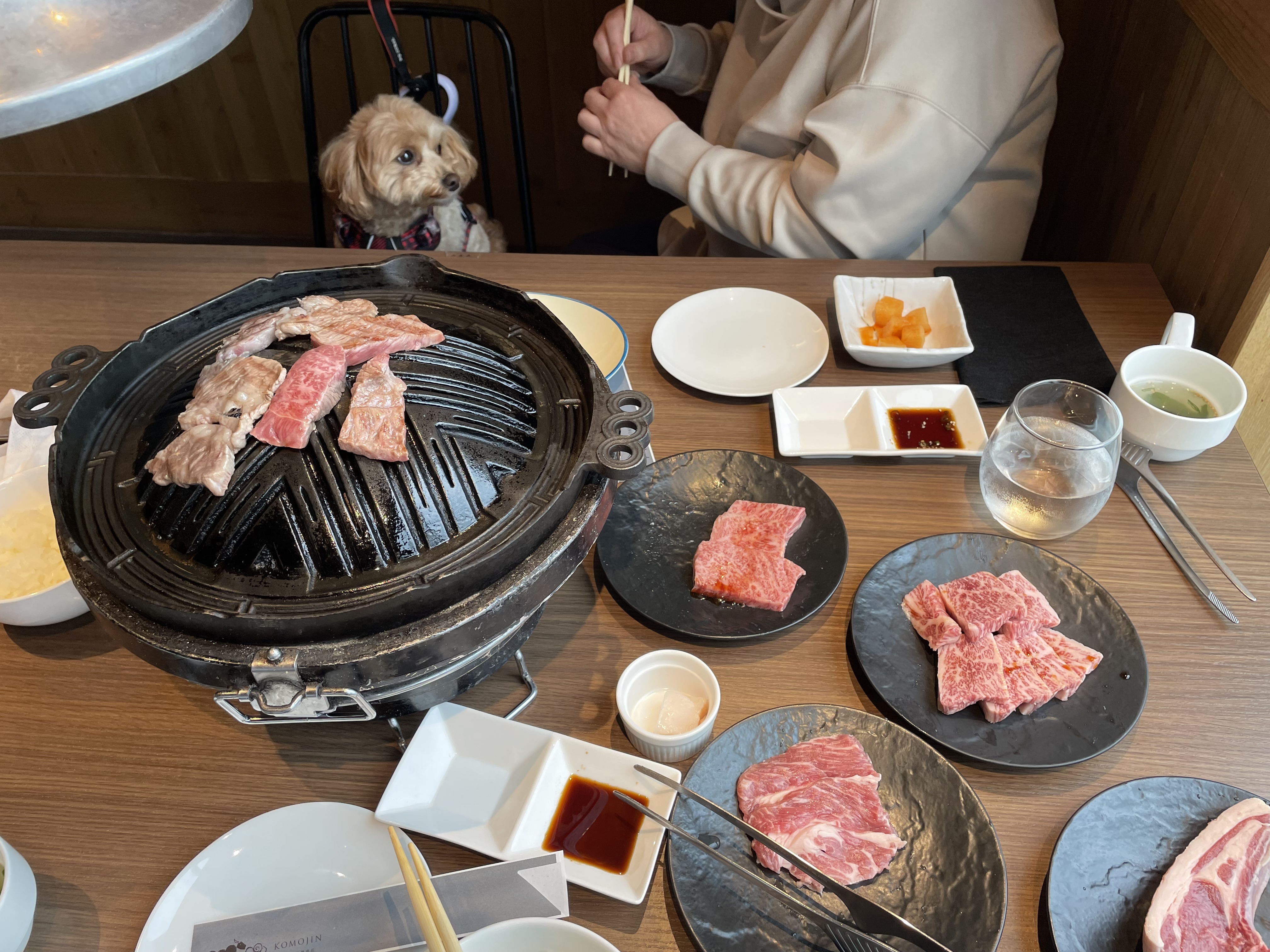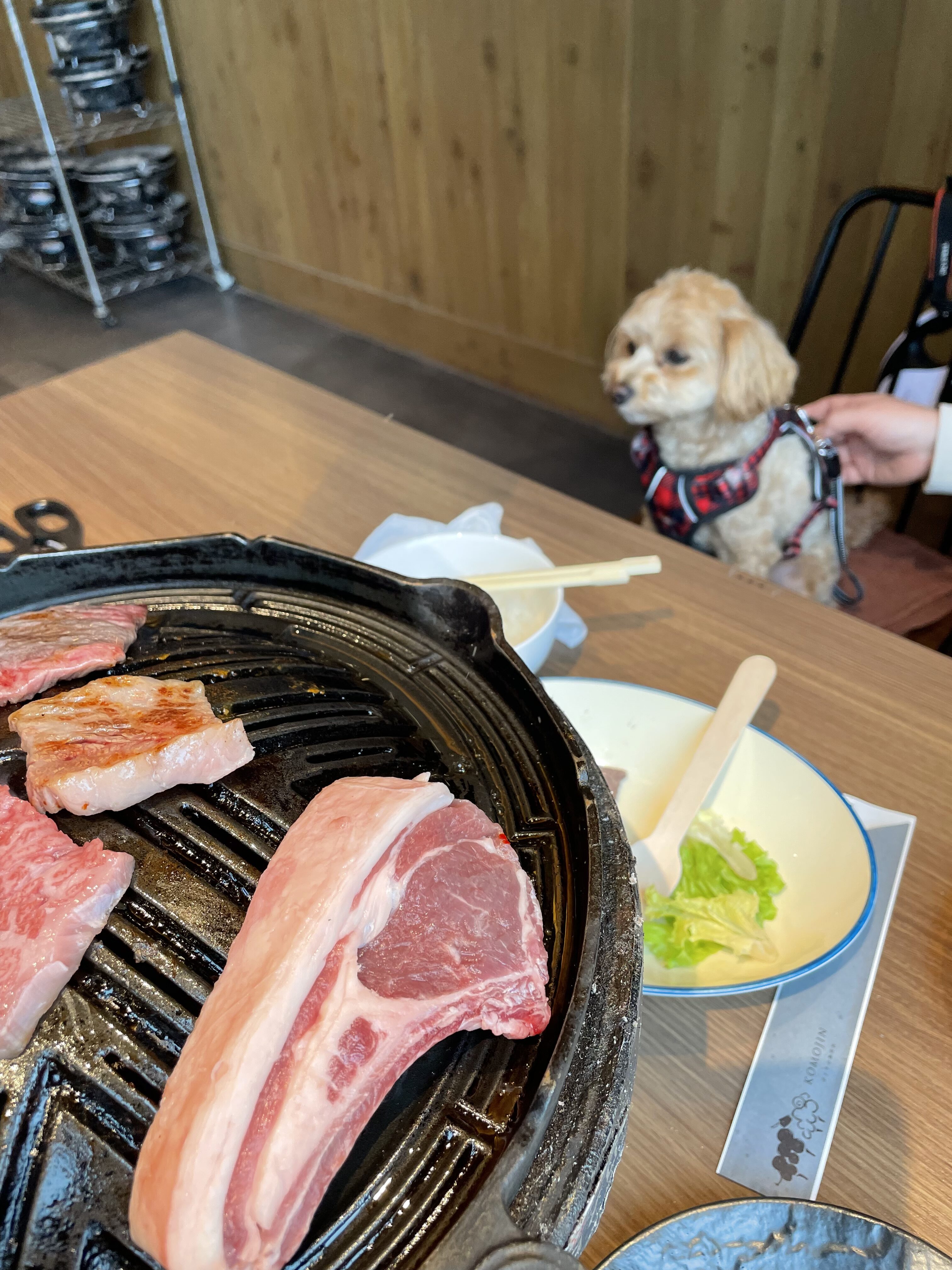 続いて予約していた犬も一緒に入れる焼肉屋さん「KOMOJIN 羊と牛の焼肉店」へ。