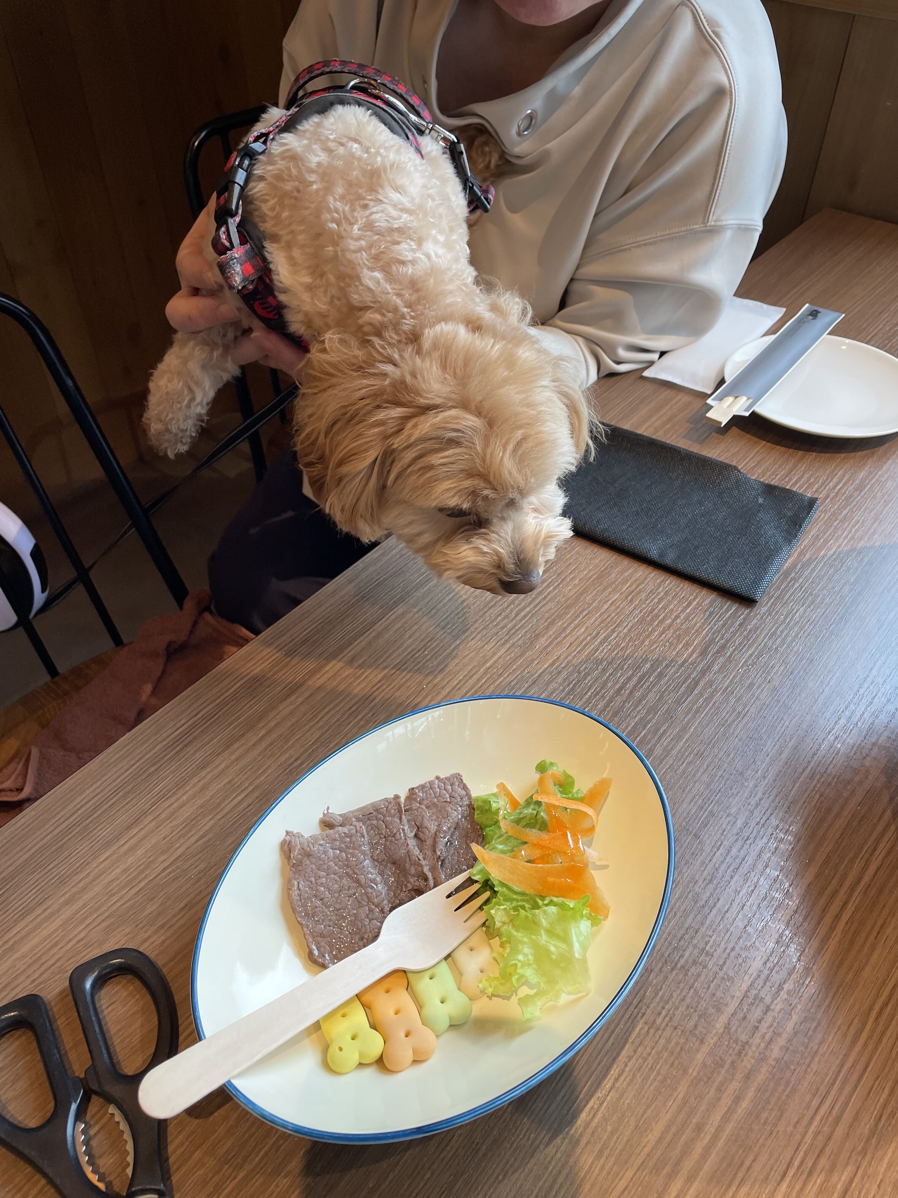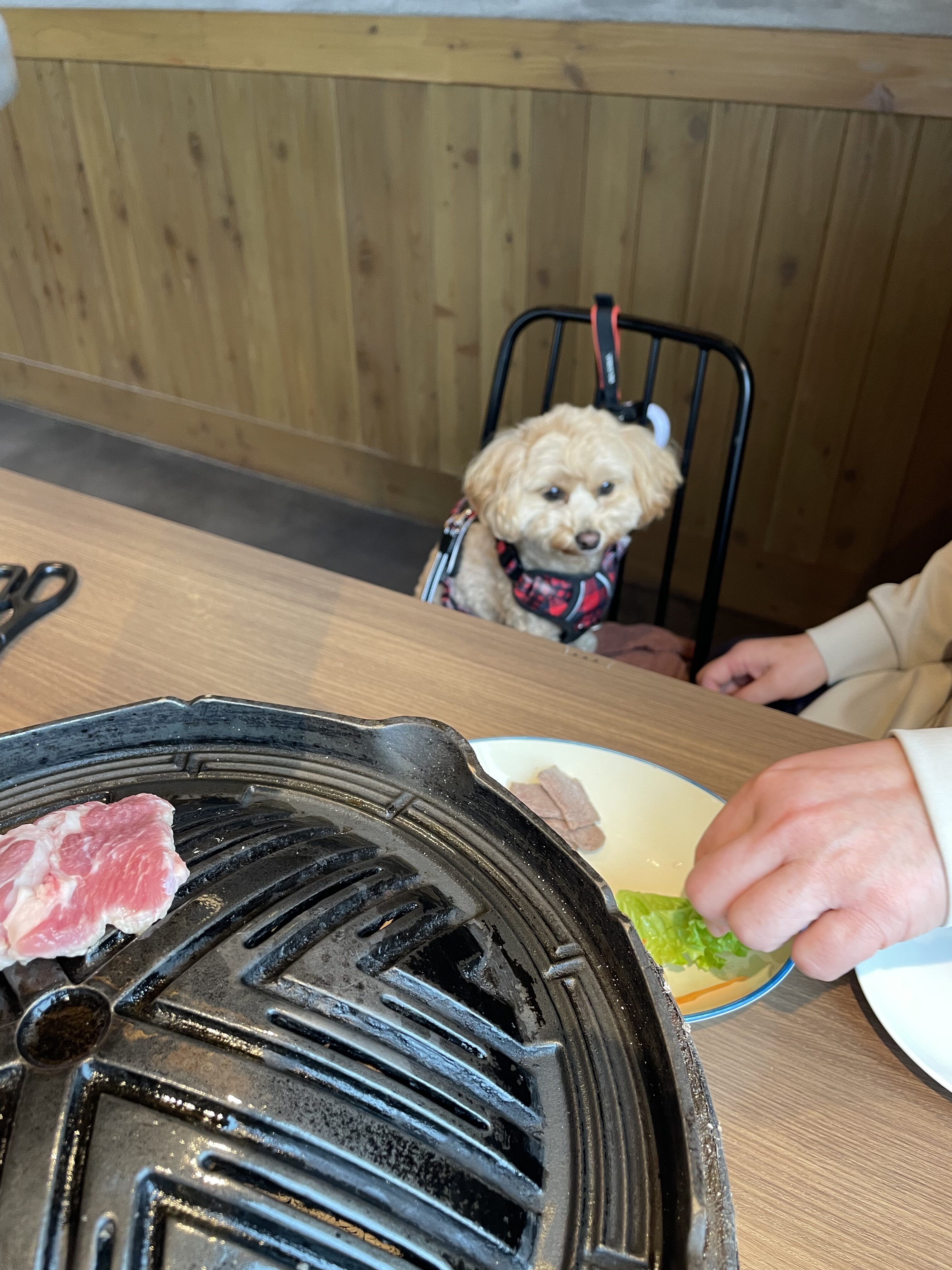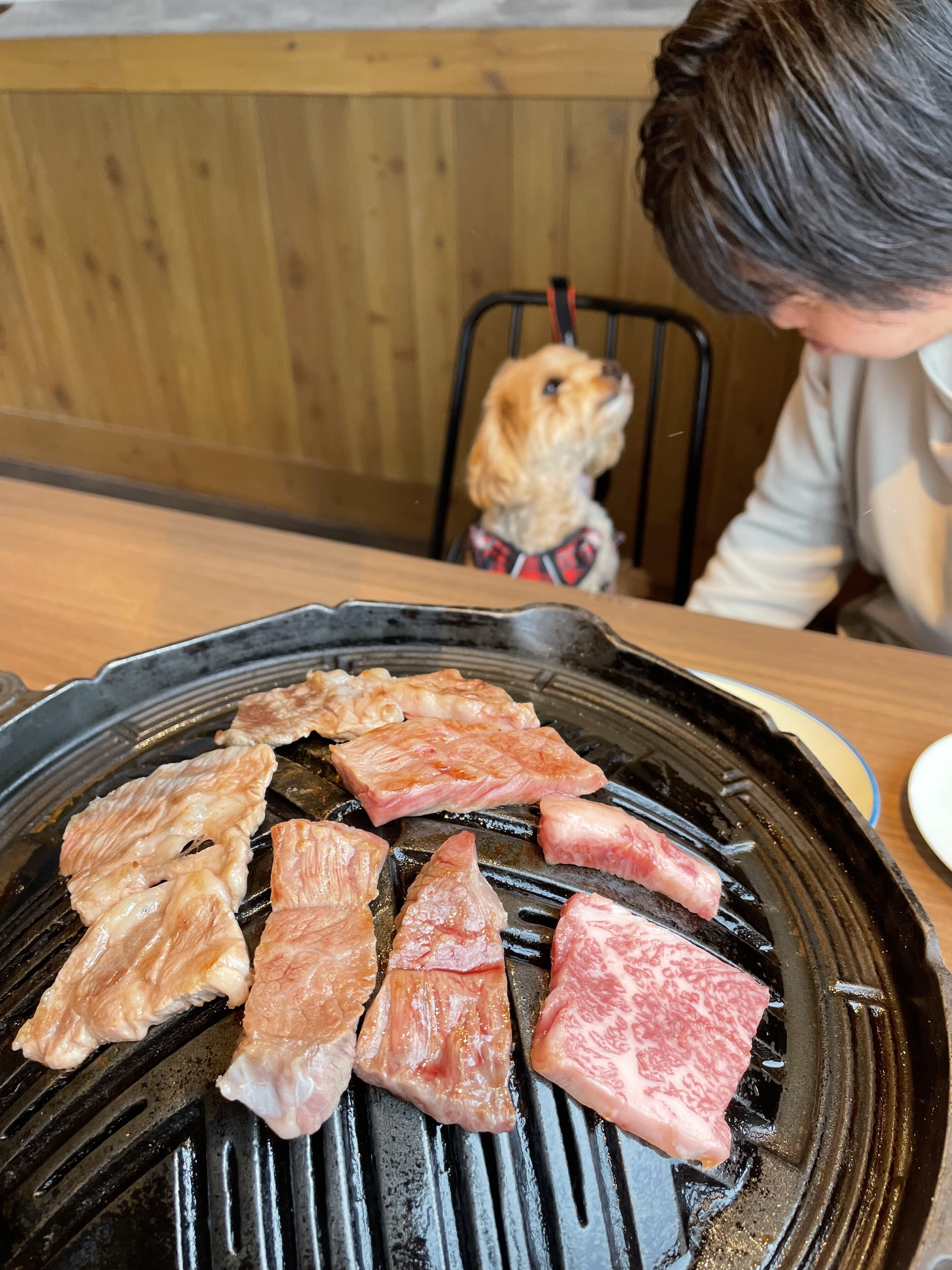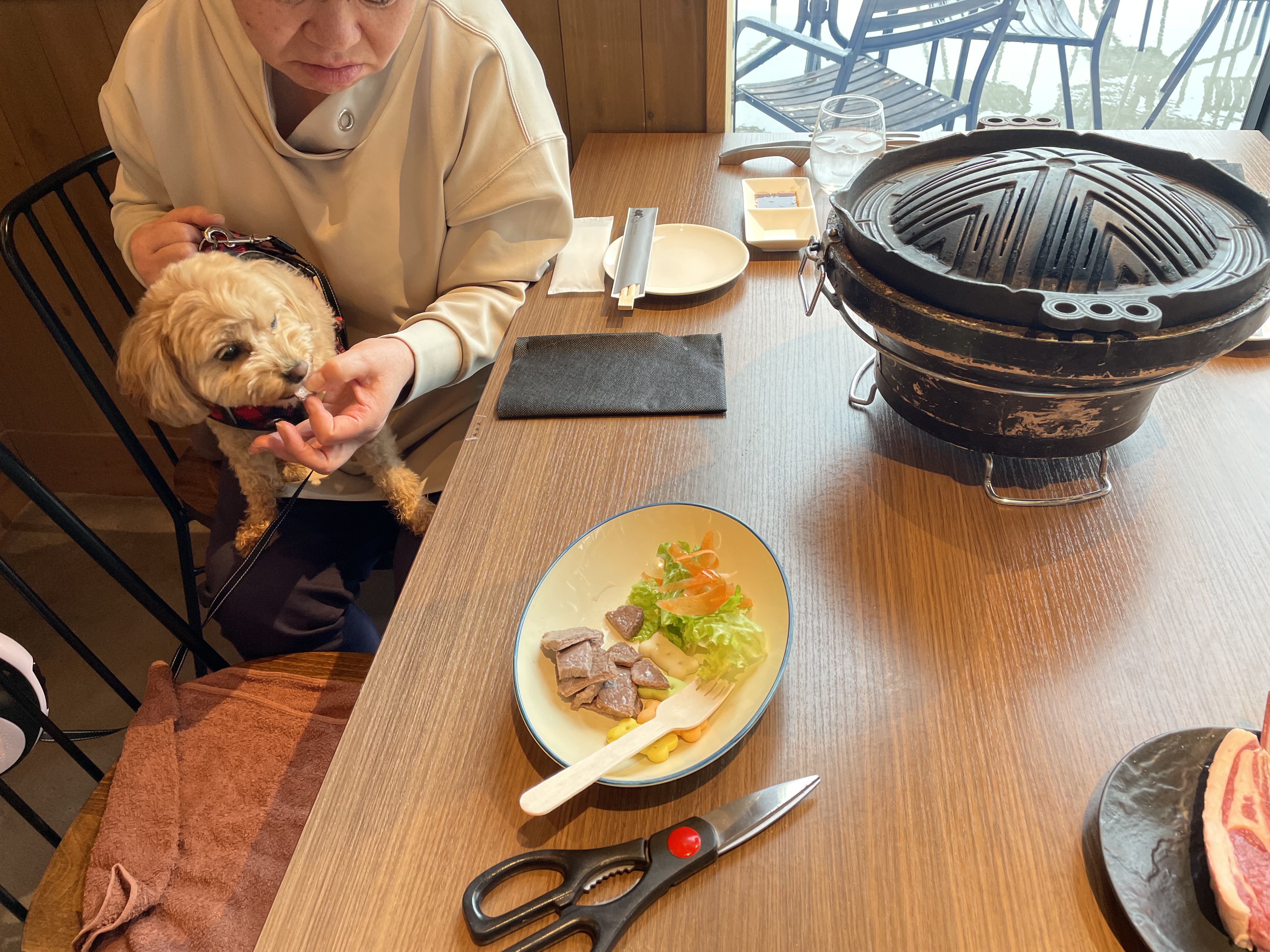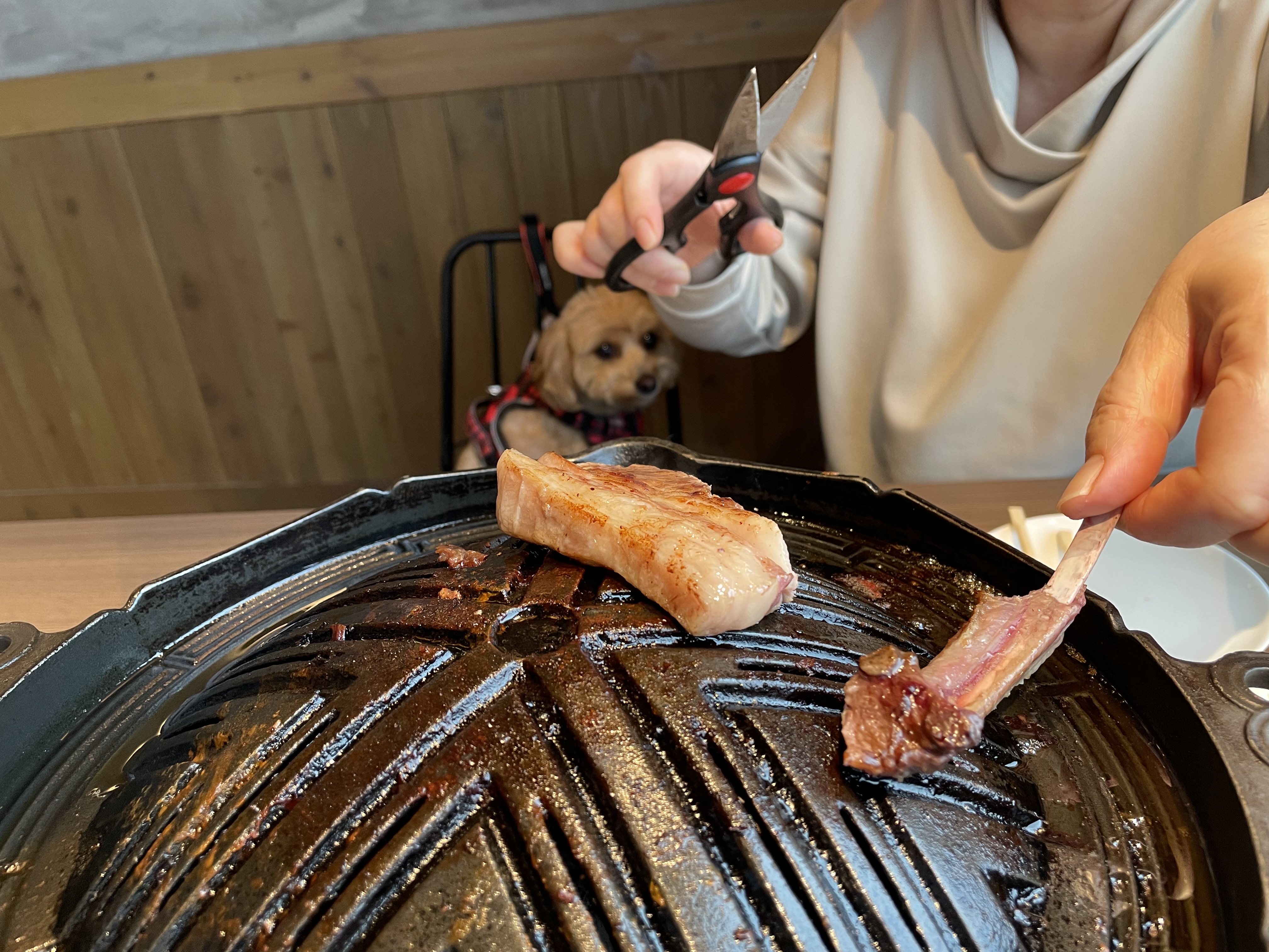 続いて予約していた犬も一緒に入れる焼肉屋さん「KOMOJIN 羊と牛の焼肉店」へ。