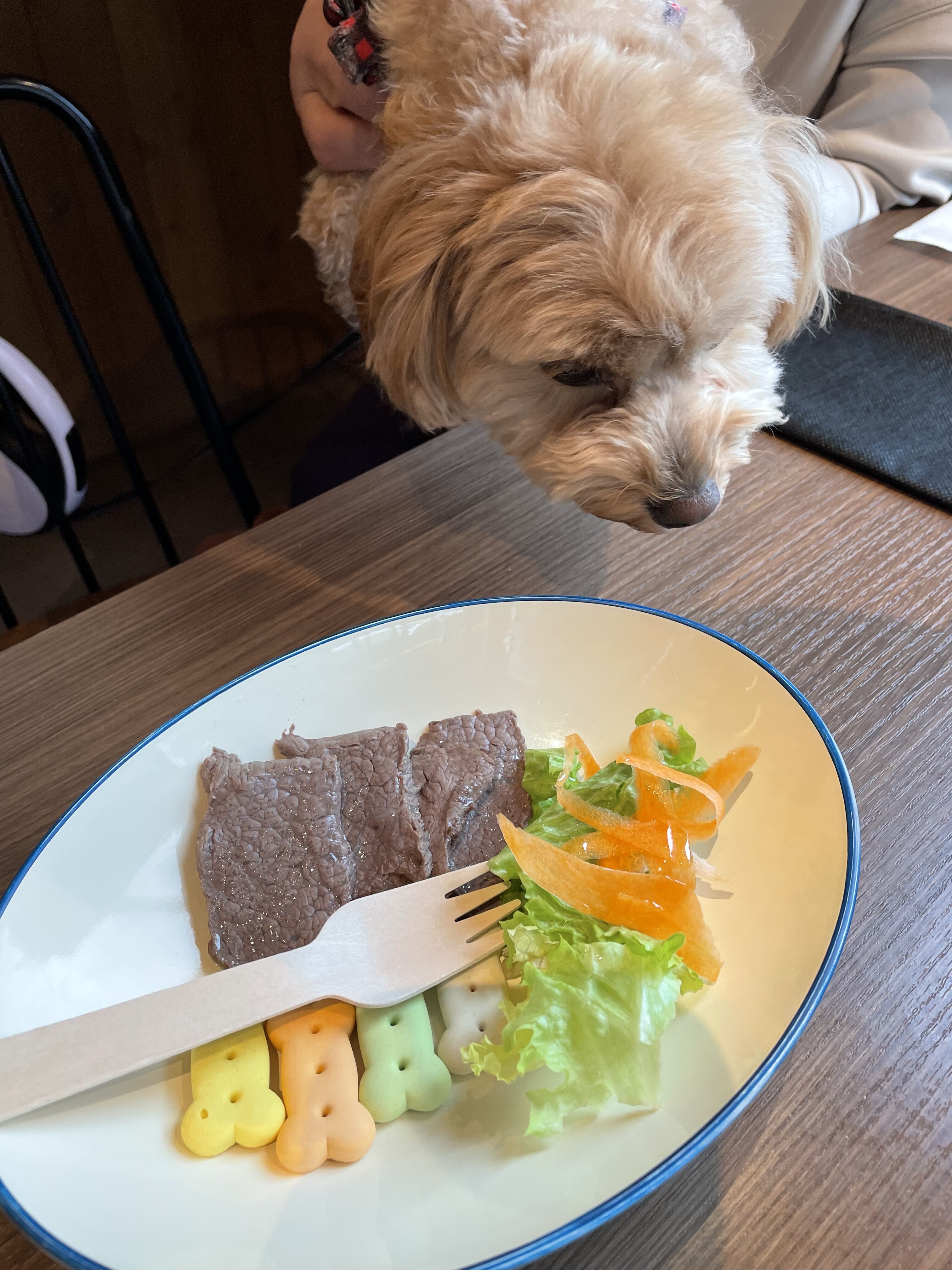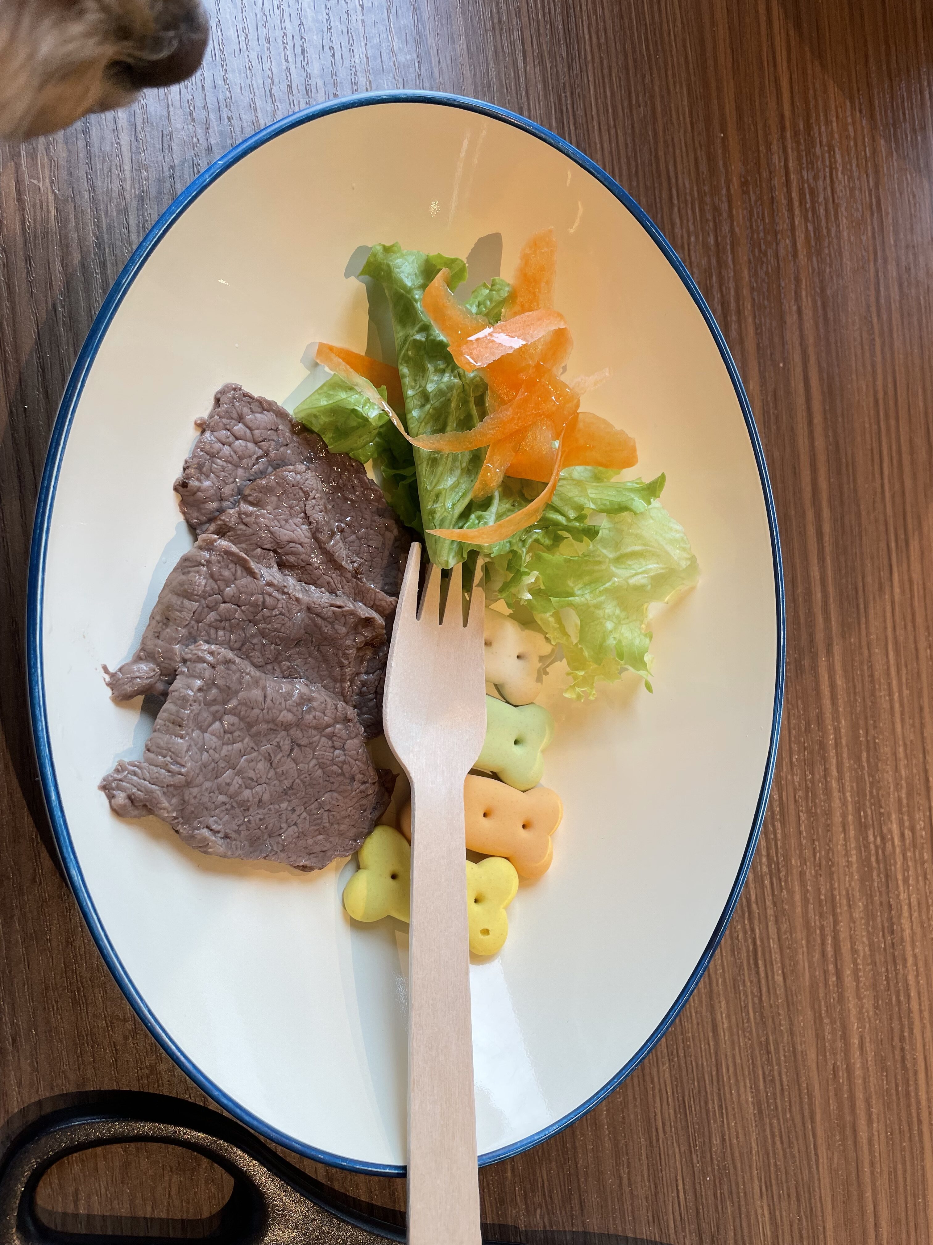 お肉の質のわりに値段もリーズナブルで大満足!犬もしっかり ステーキをいただきました。