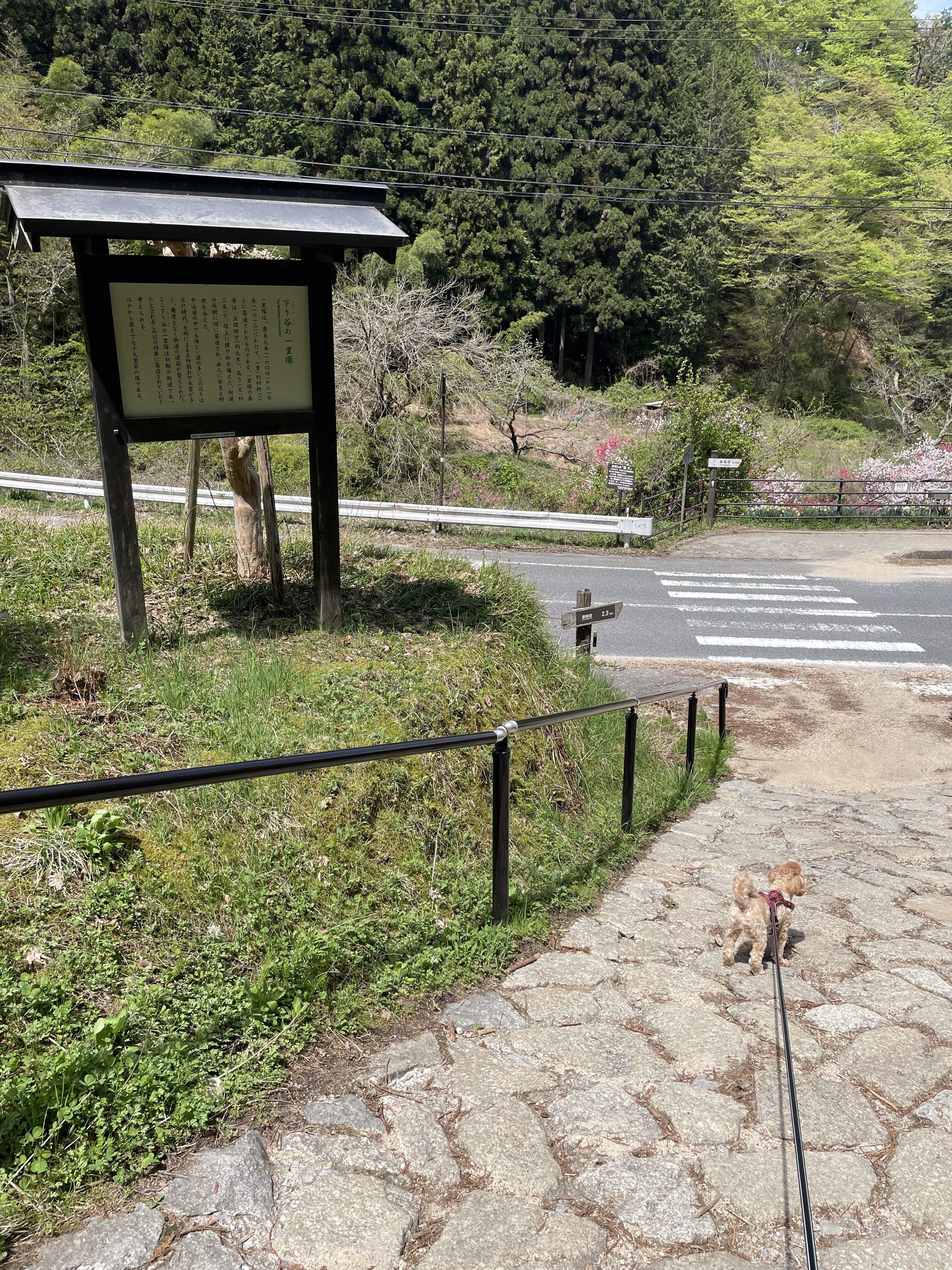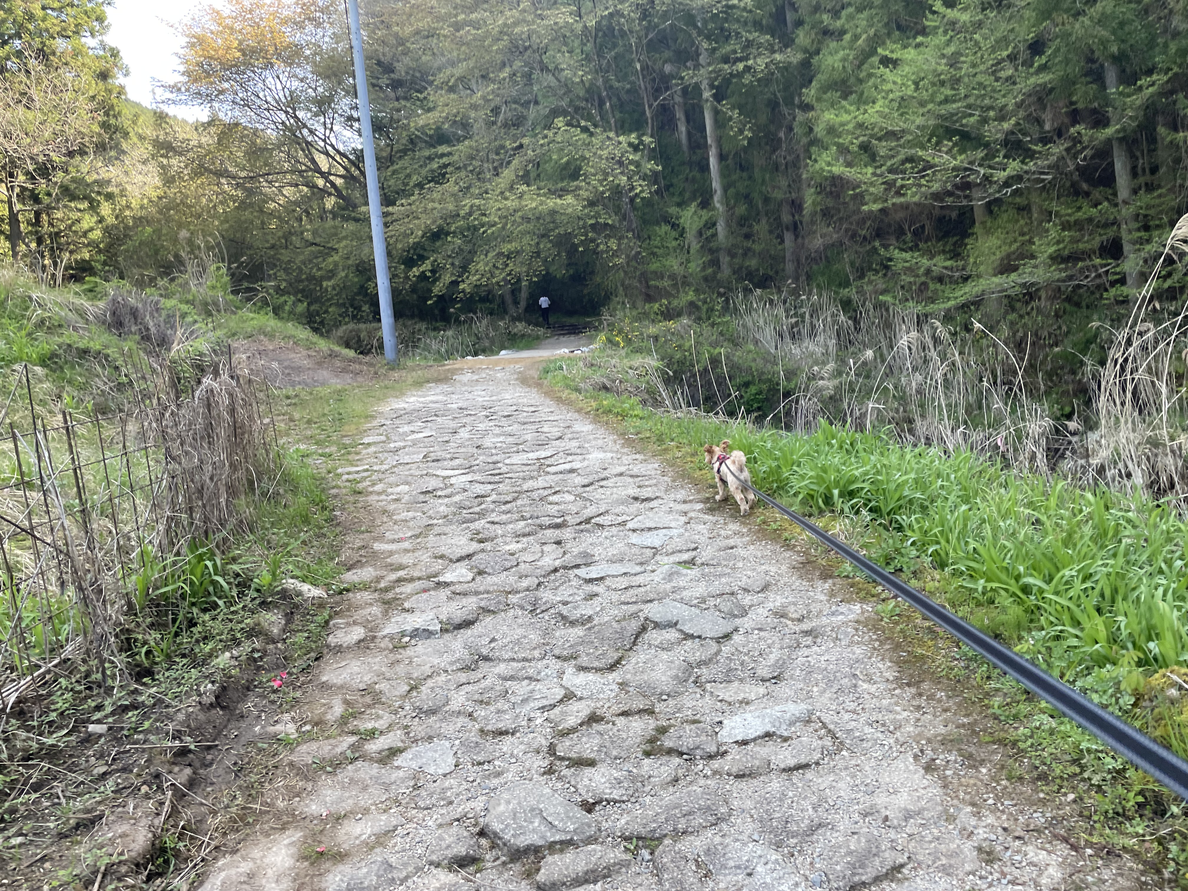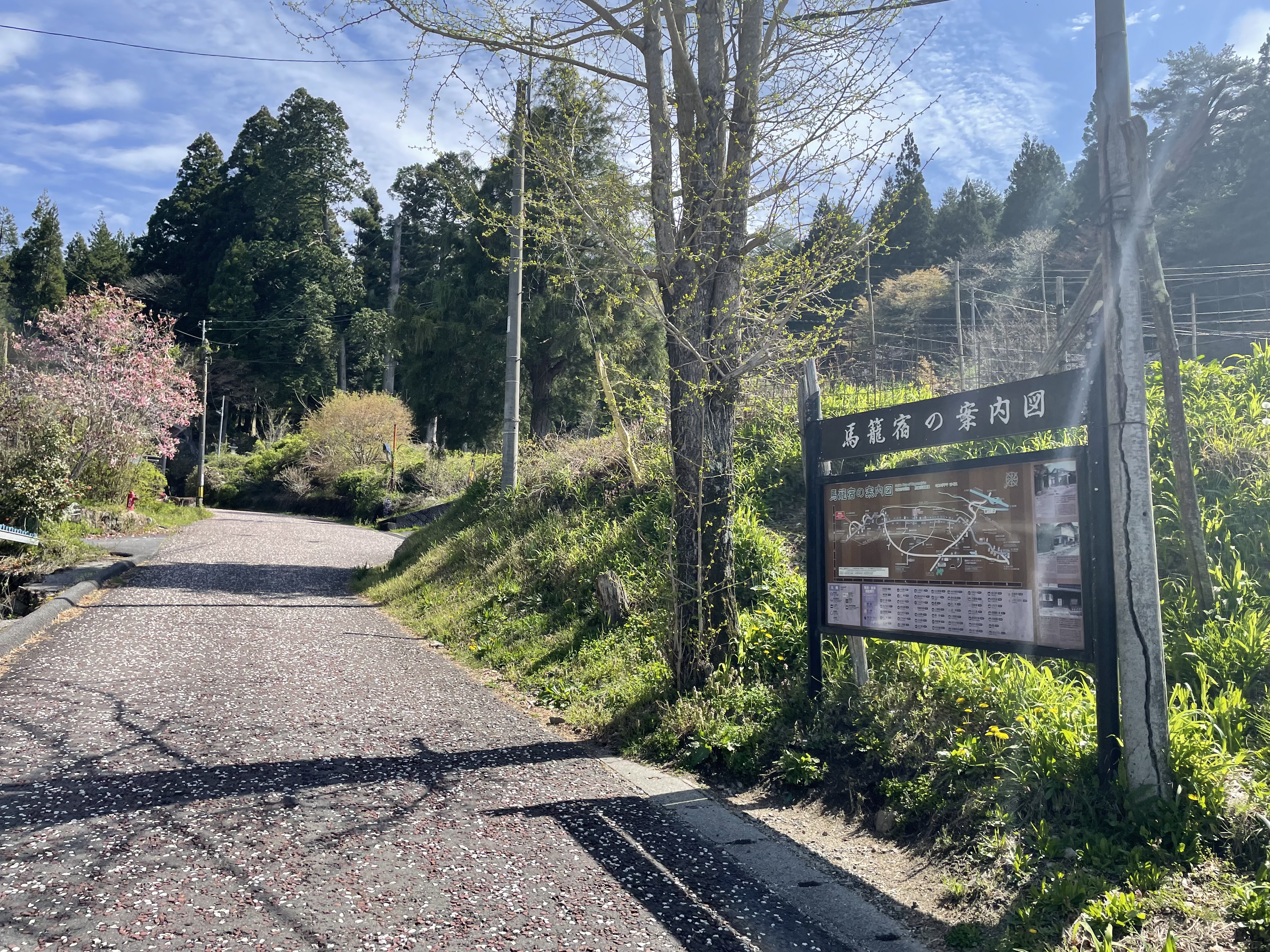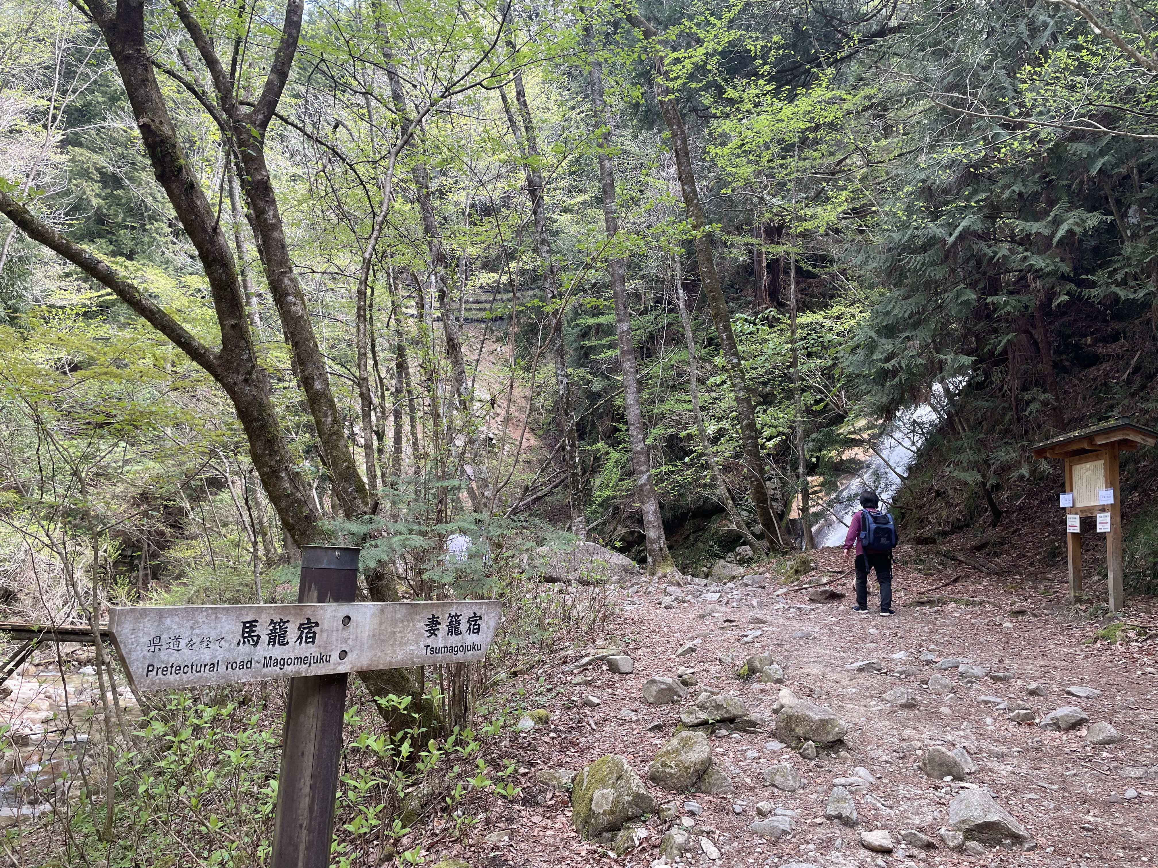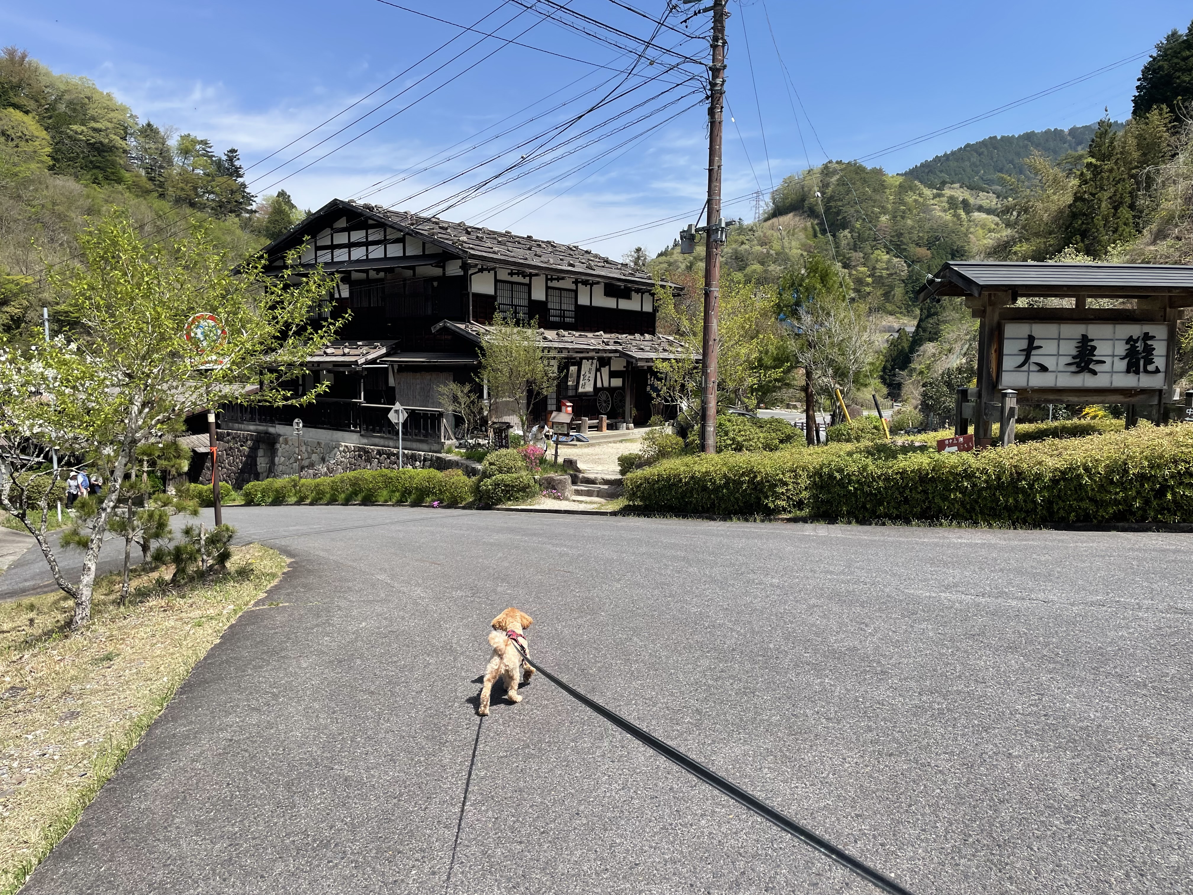 サムライロード(馬籠→妻籠)を犬と行く - Category - ちいさなたび 4月中旬の日曜日。犬も歩けそうなところということで、中山道の馬籠宿から妻籠宿までの通称「サムライロード」を歩いてみた。8時半過ぎに馬籠の駐車場に車を停め、坂道を歩きだす。犬がちょっと疲れたかなと思えば、かごに入れ男滝女滝も寄って、12時44分のバスで馬籠まで戻った。天気も良くて半袖でも暑い陽気。犬も疲れたが俺たちも心地よい一日だった。