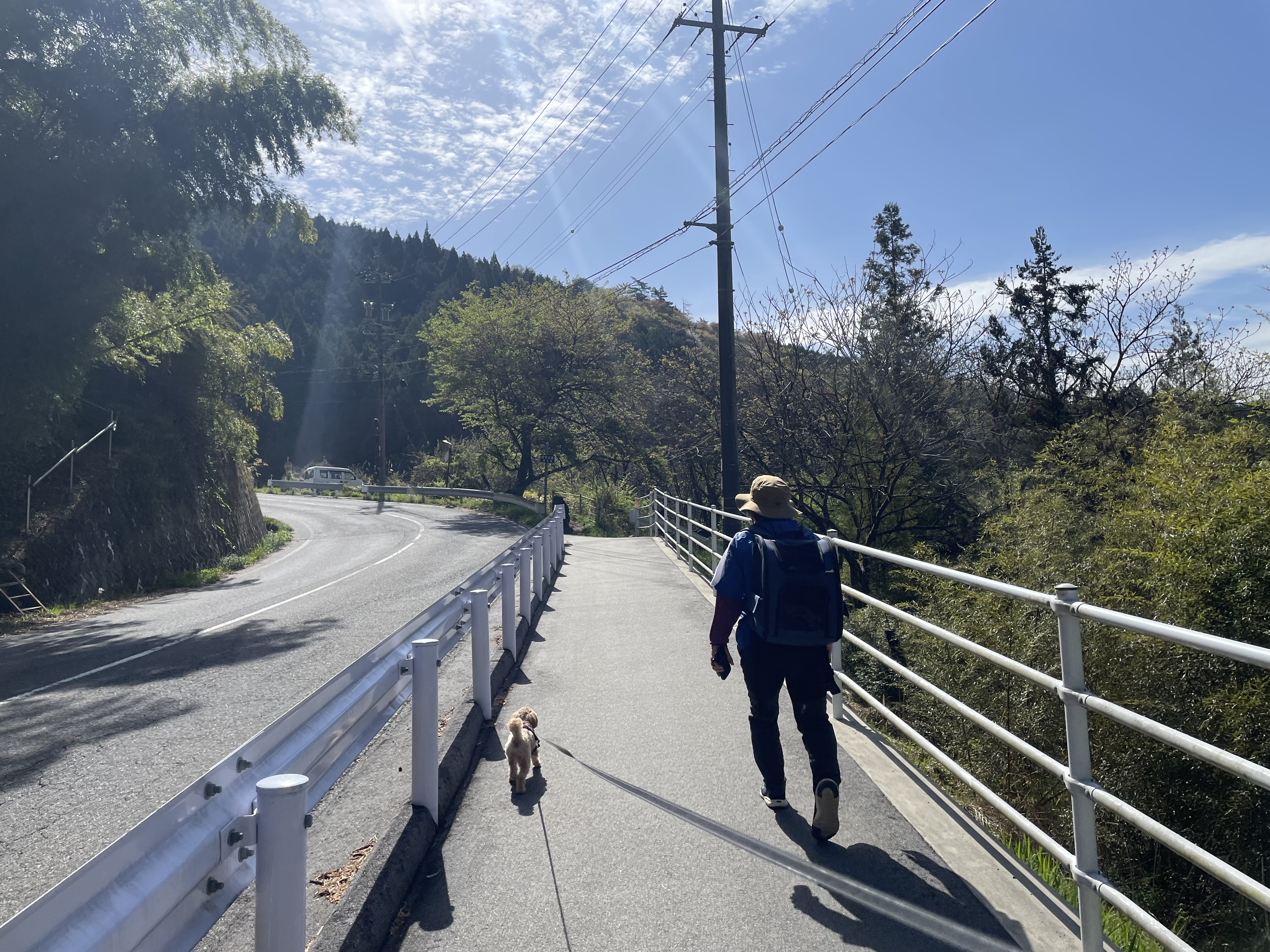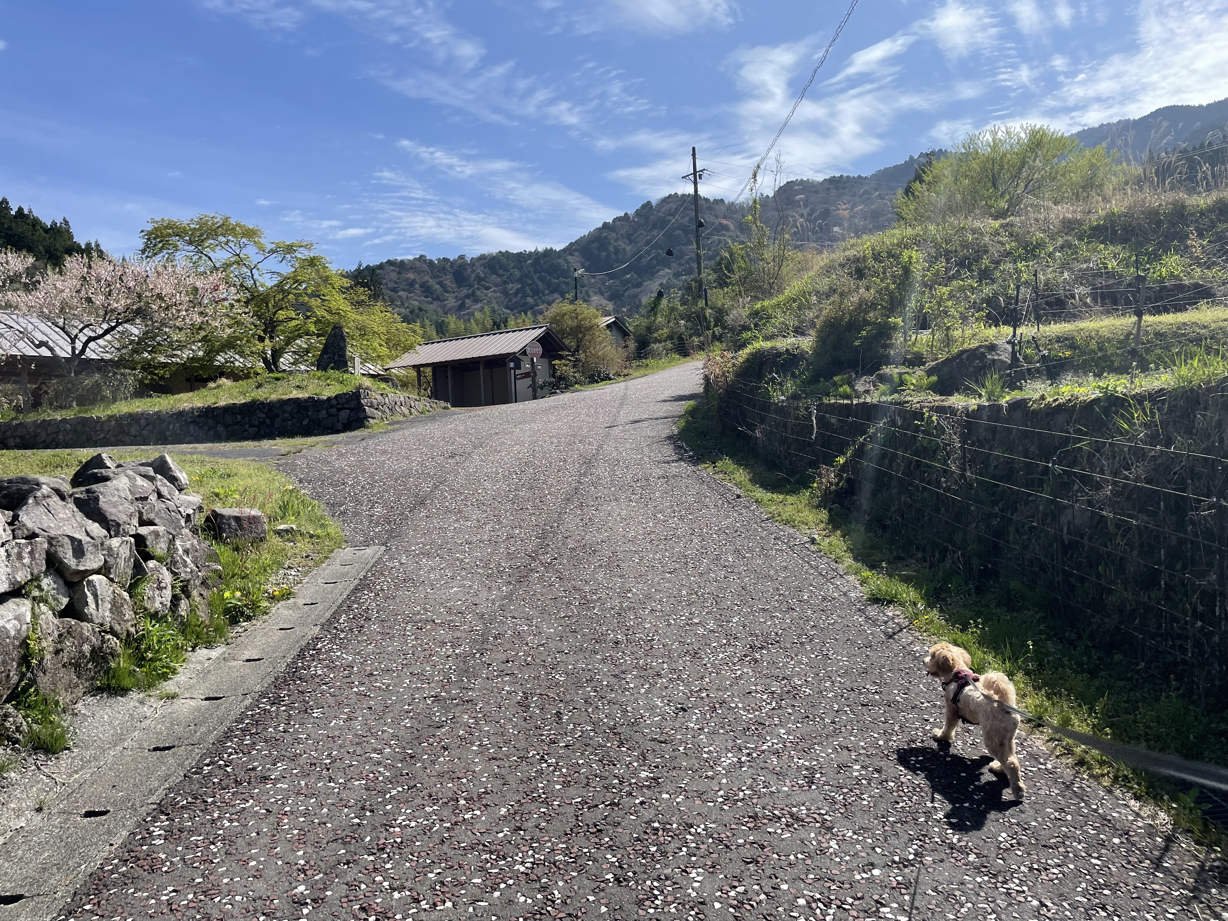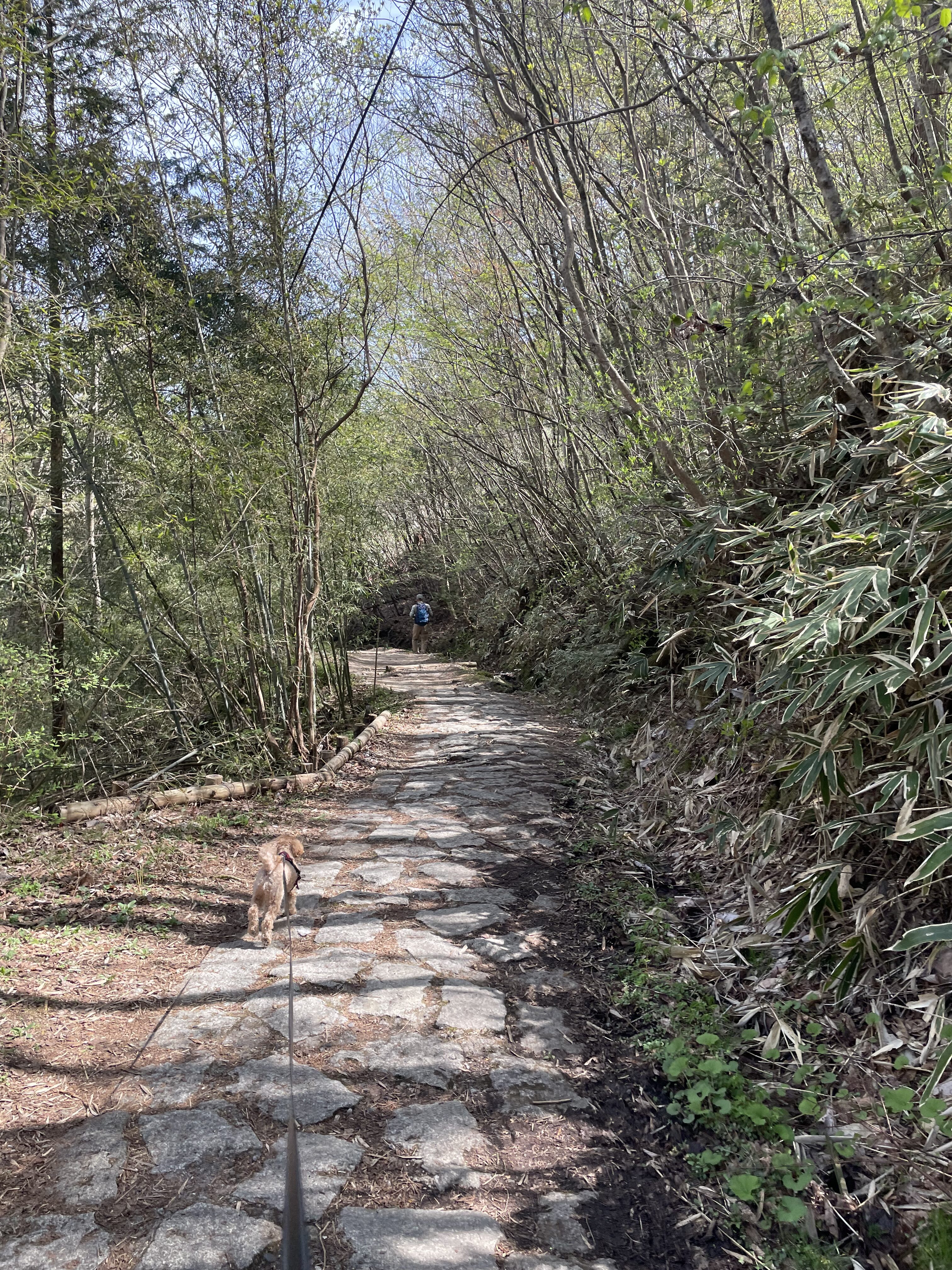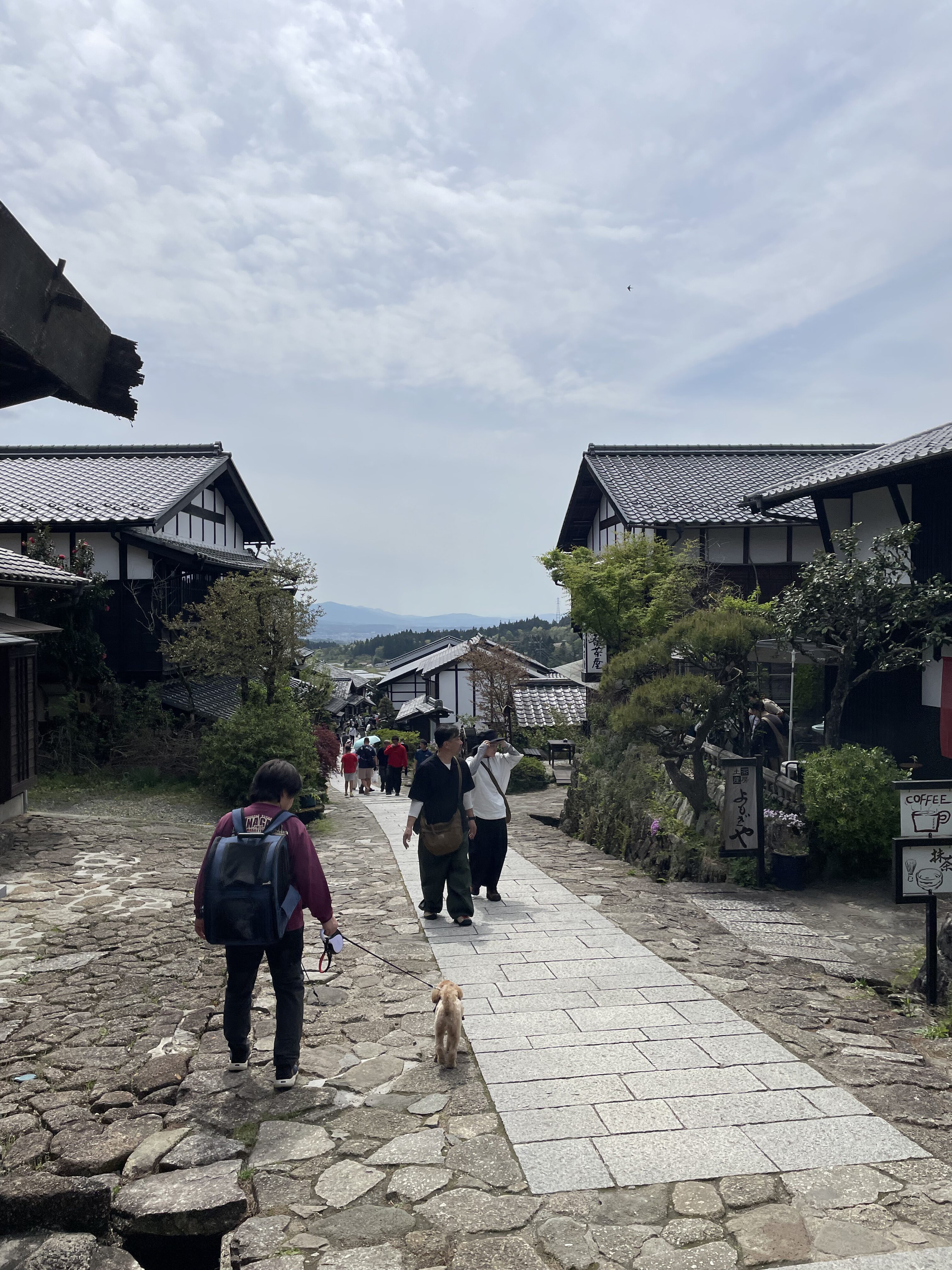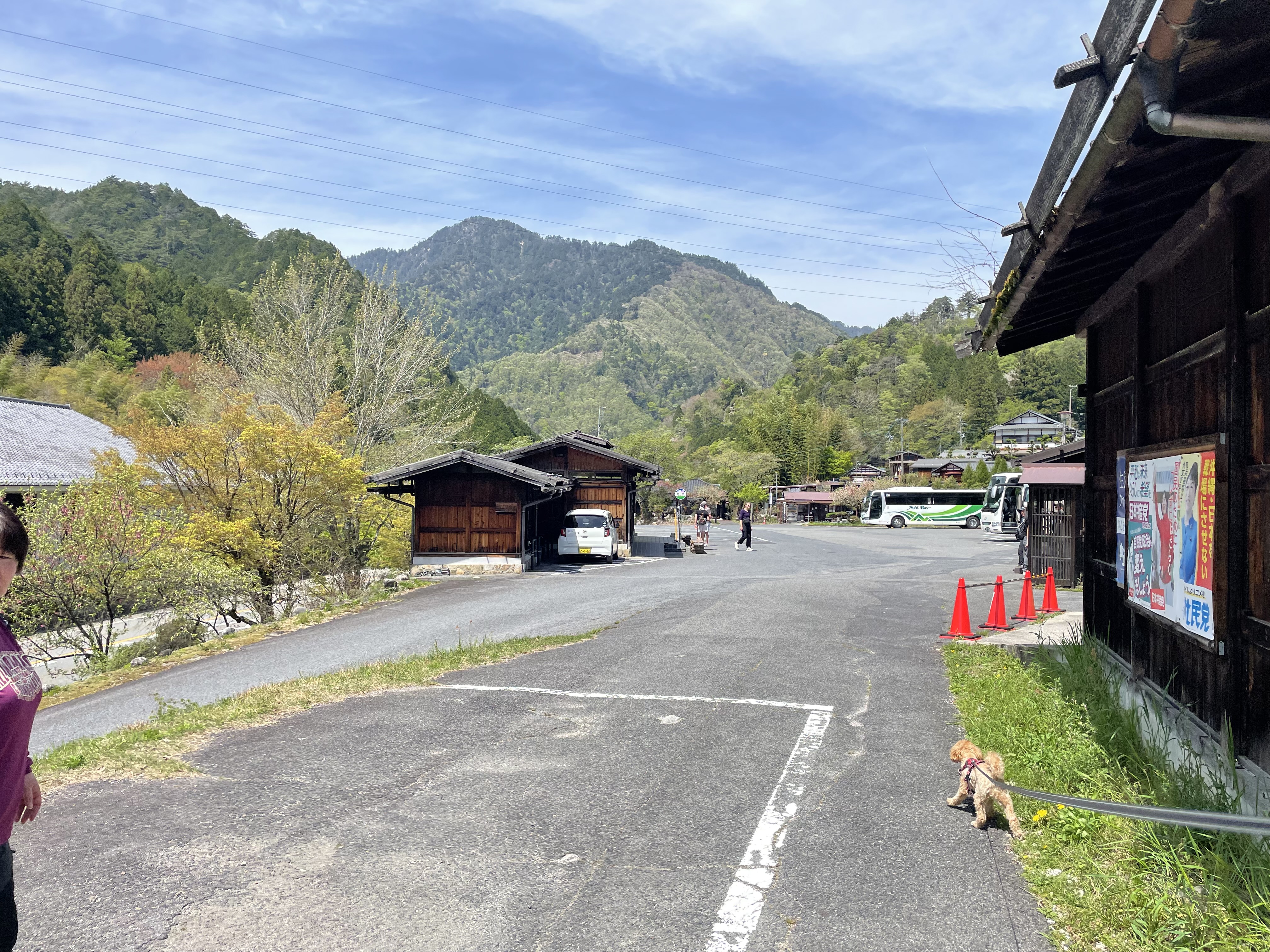 サムライロード(馬籠→妻籠)を犬と行く - Category - ちいさなたび 4月中旬の日曜日。犬も歩けそうなところということで、中山道の馬籠宿から妻籠宿までの通称「サムライロード」を歩いてみた。8時半過ぎに馬籠の駐車場に車を停め、坂道を歩きだす。犬がちょっと疲れたかなと思えば、かごに入れ男滝女滝も寄って、12時44分のバスで馬籠まで戻った。天気も良くて半袖でも暑い陽気。犬も疲れたが俺たちも心地よい一日だった。