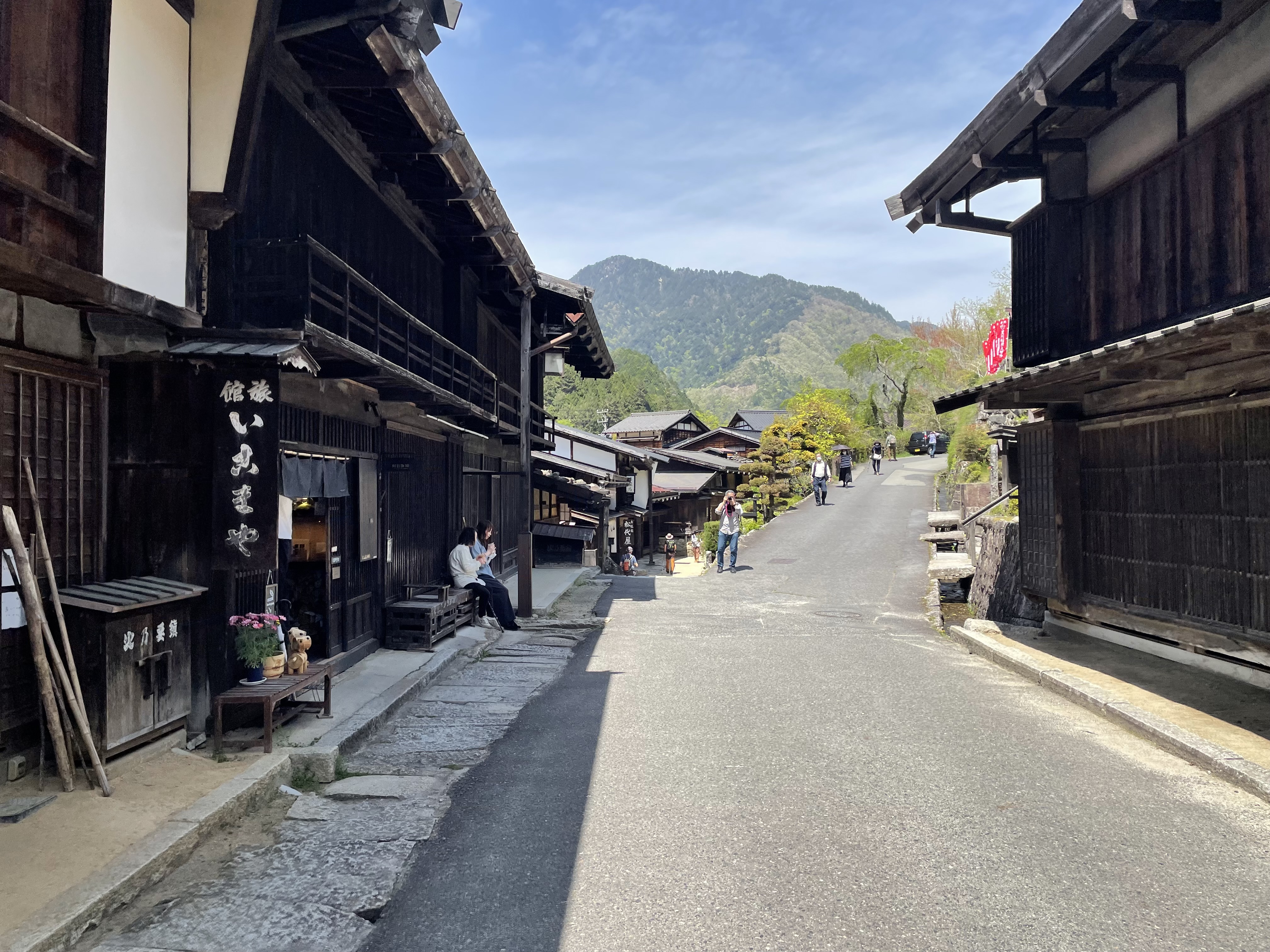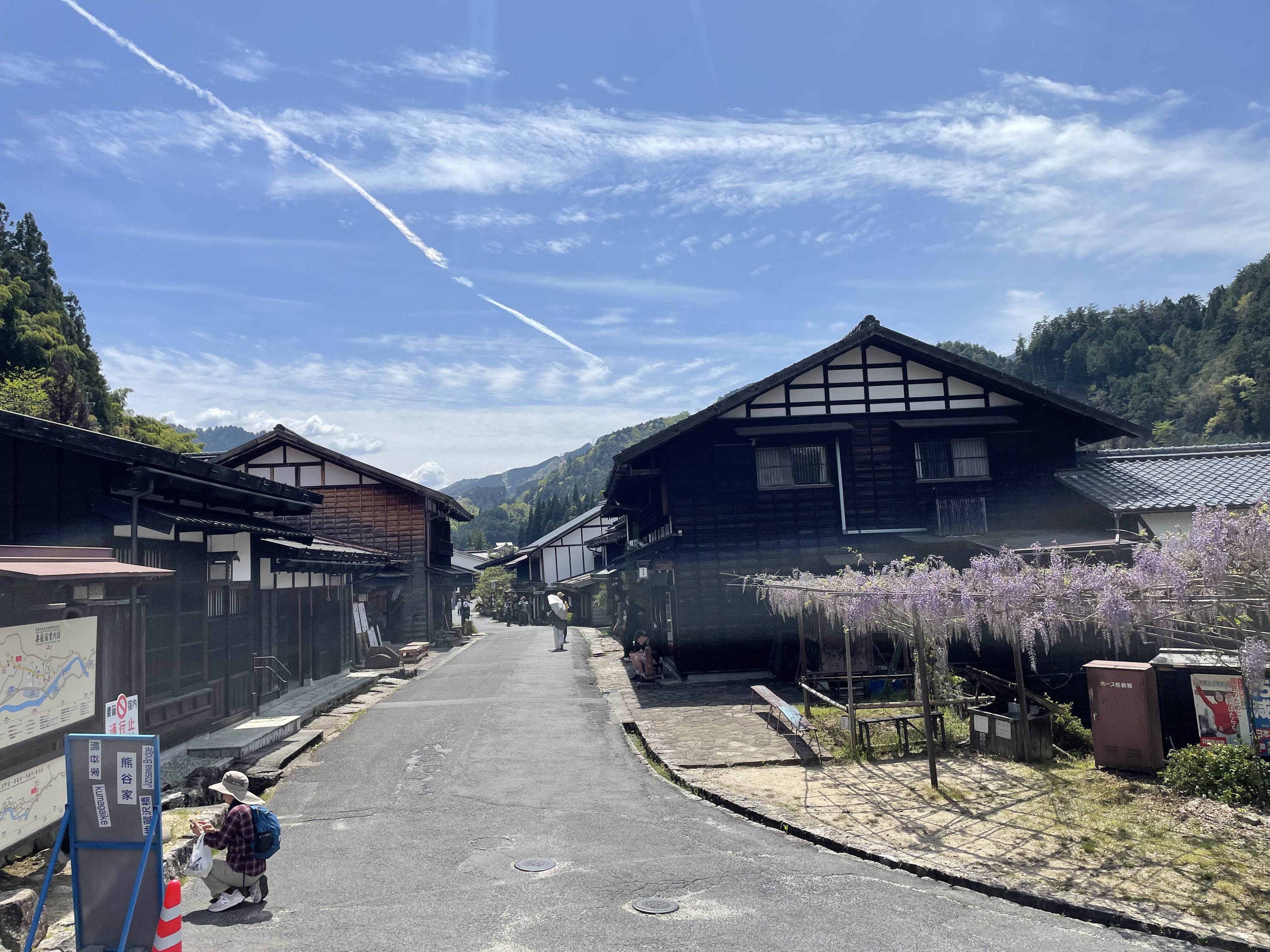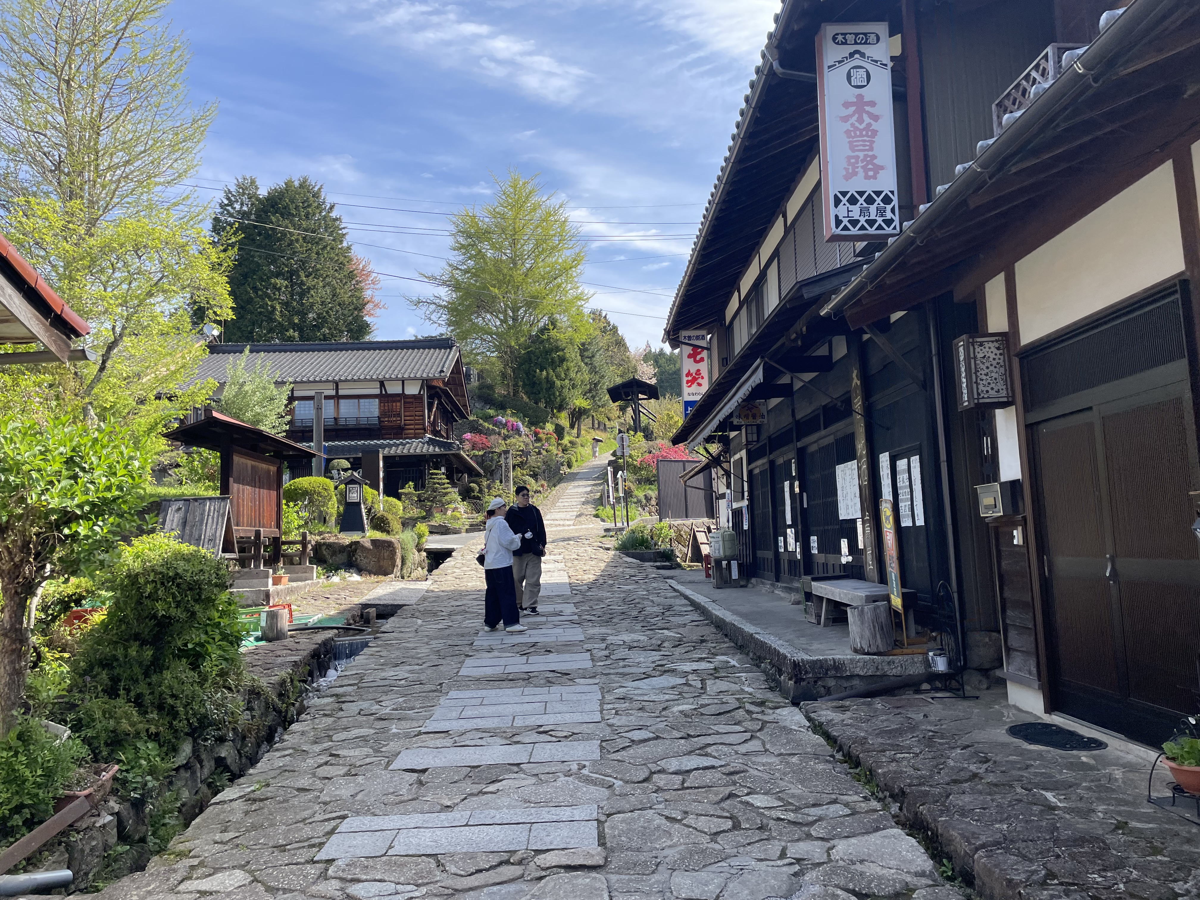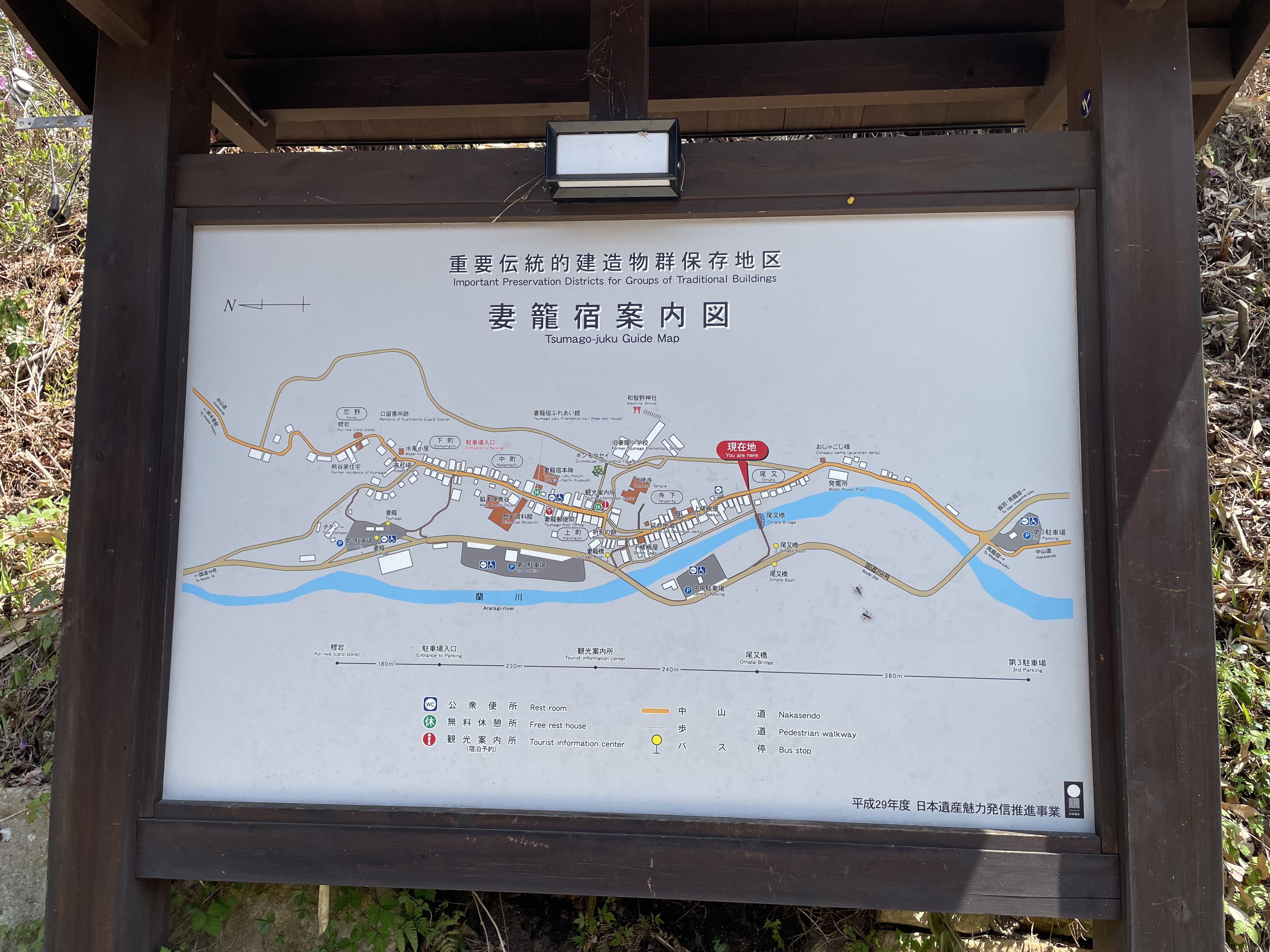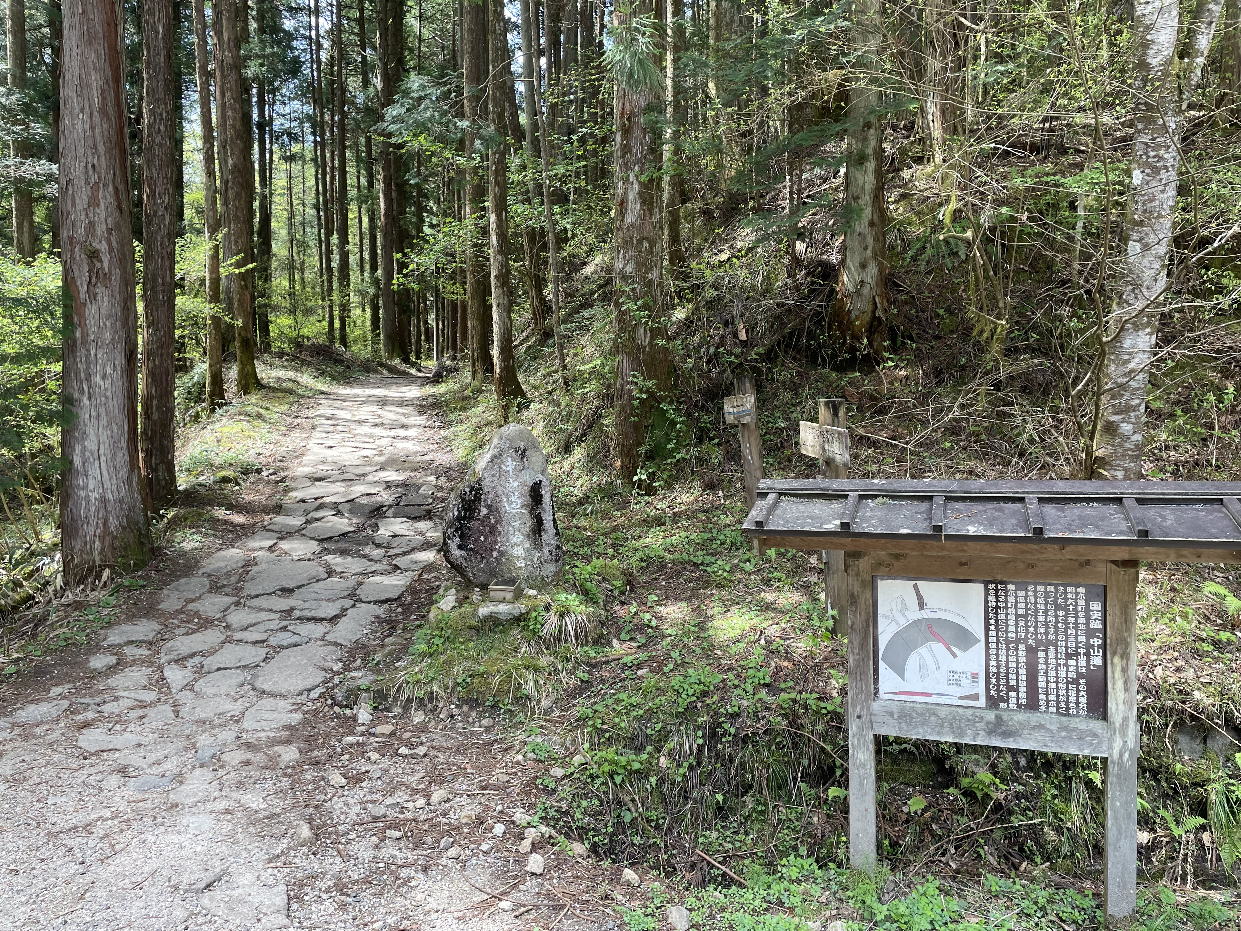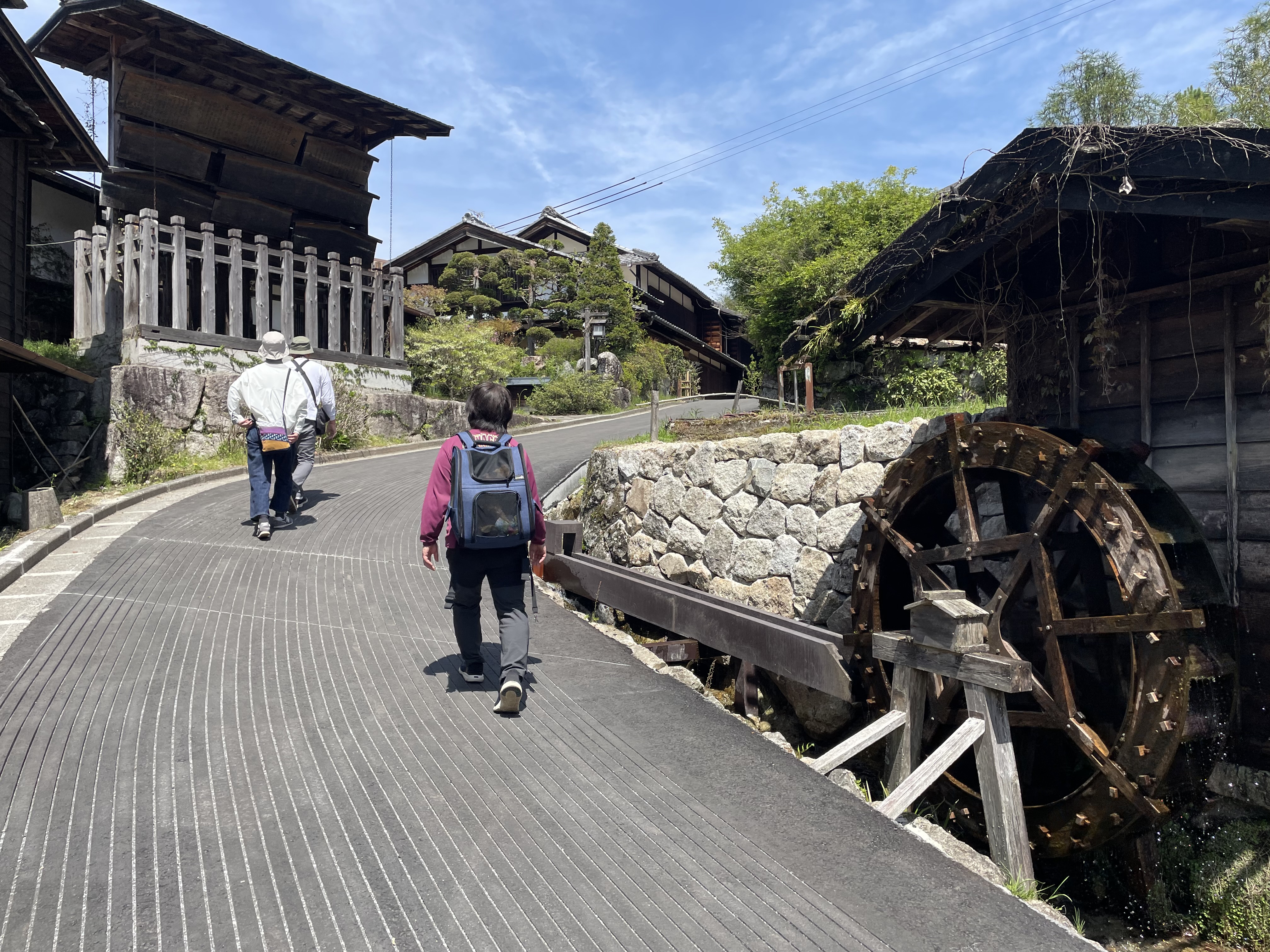 サムライロード(馬籠→妻籠)を犬と行く - Category - ちいさなたび 4月中旬の日曜日。犬も歩けそうなところということで、中山道の馬籠宿から妻籠宿までの通称「サムライロード」を歩いてみた。8時半過ぎに馬籠の駐車場に車を停め、坂道を歩きだす。犬がちょっと疲れたかなと思えば、かごに入れ男滝女滝も寄って、12時44分のバスで馬籠まで戻った。天気も良くて半袖でも暑い陽気。犬も疲れたが俺たちも心地よい一日だった。