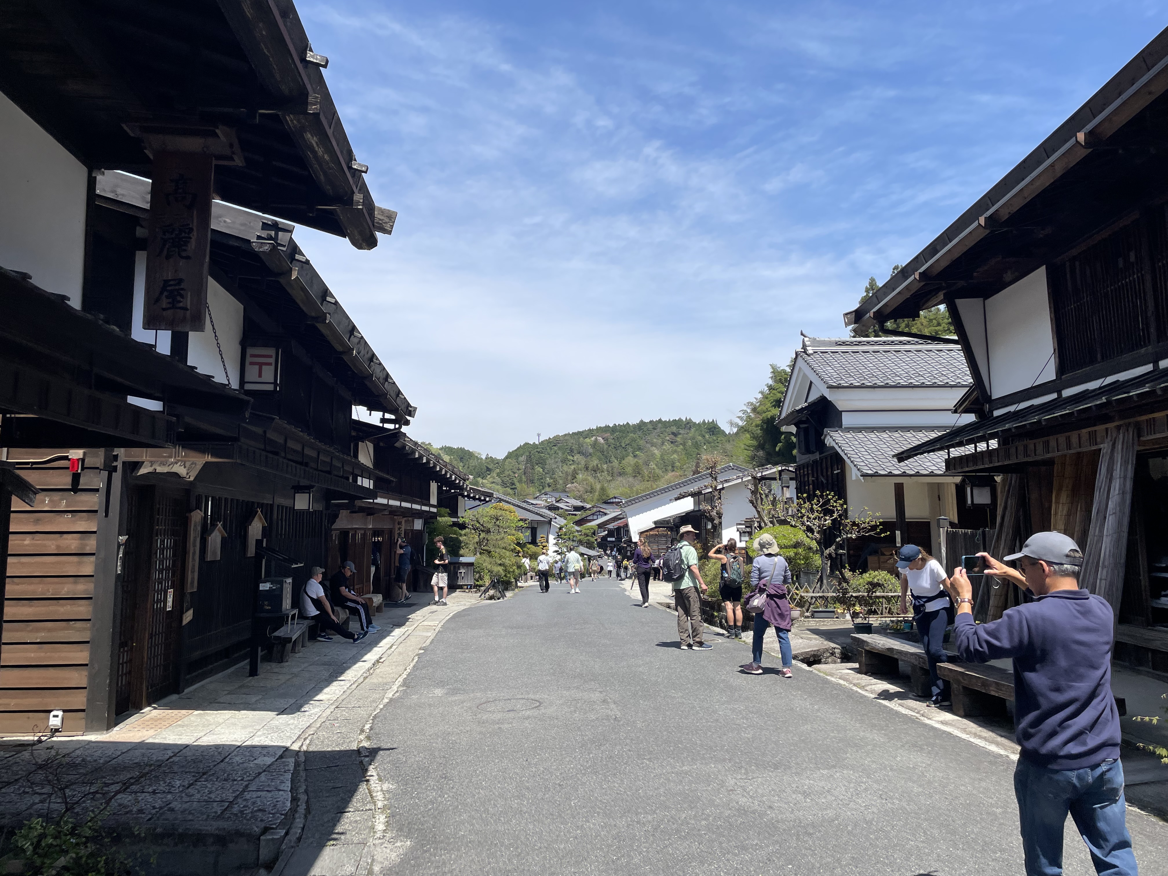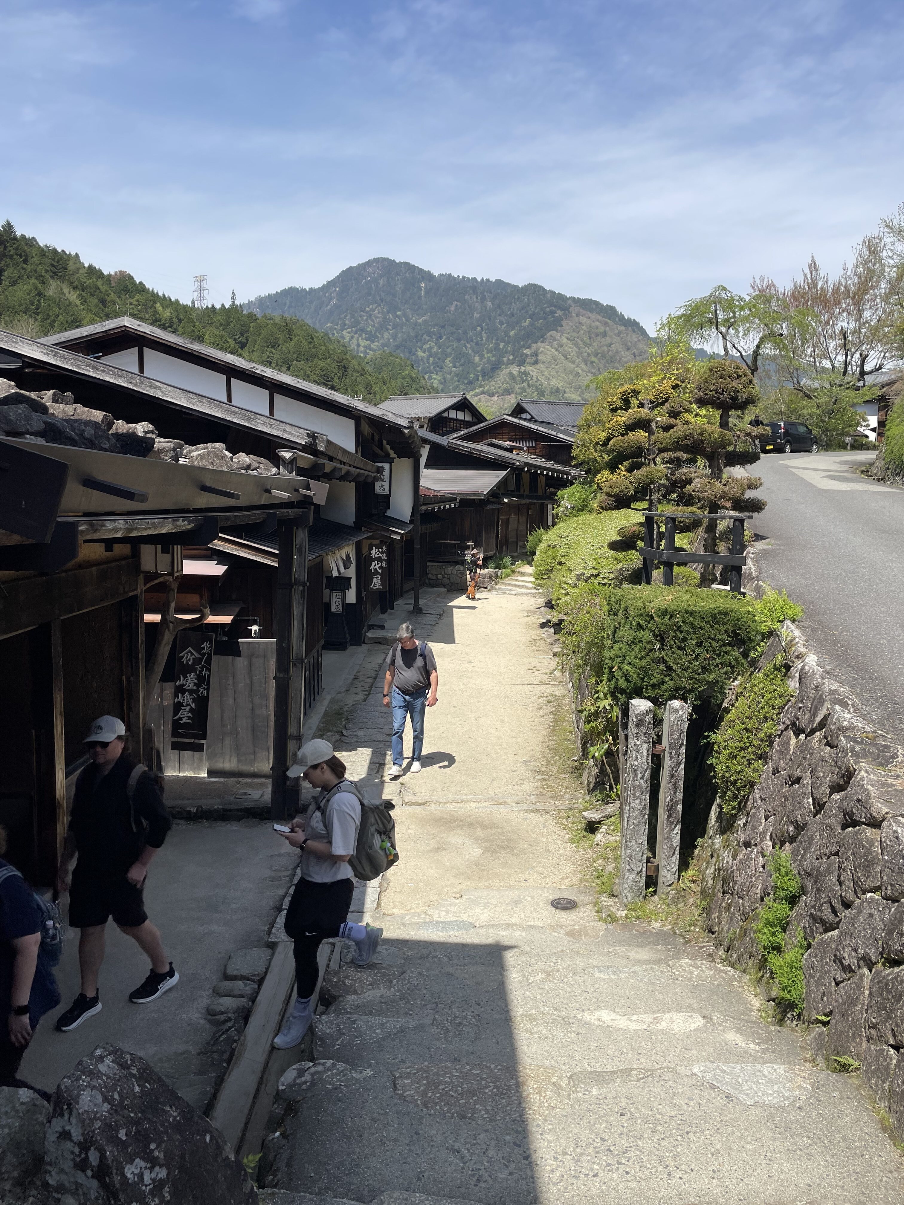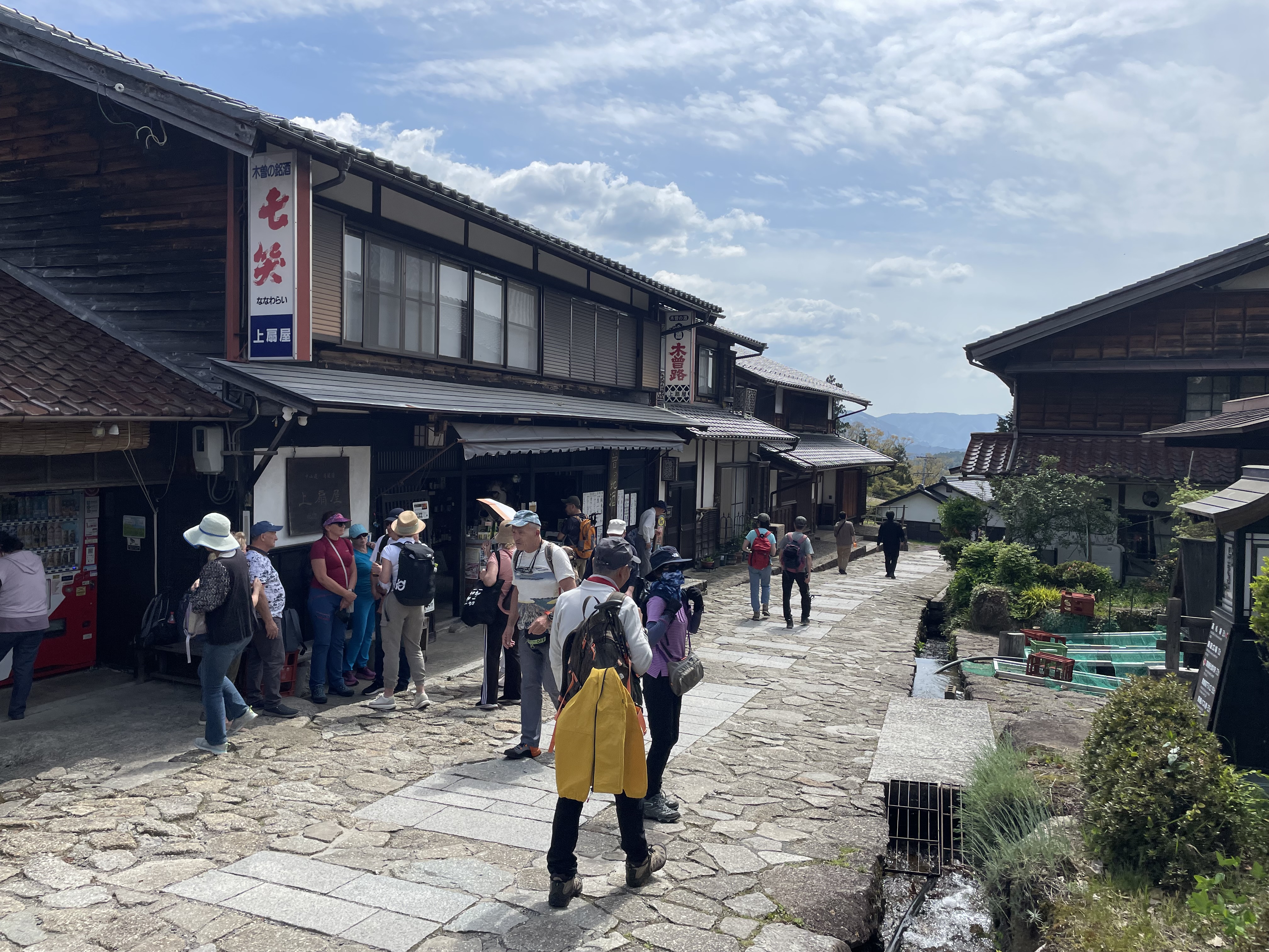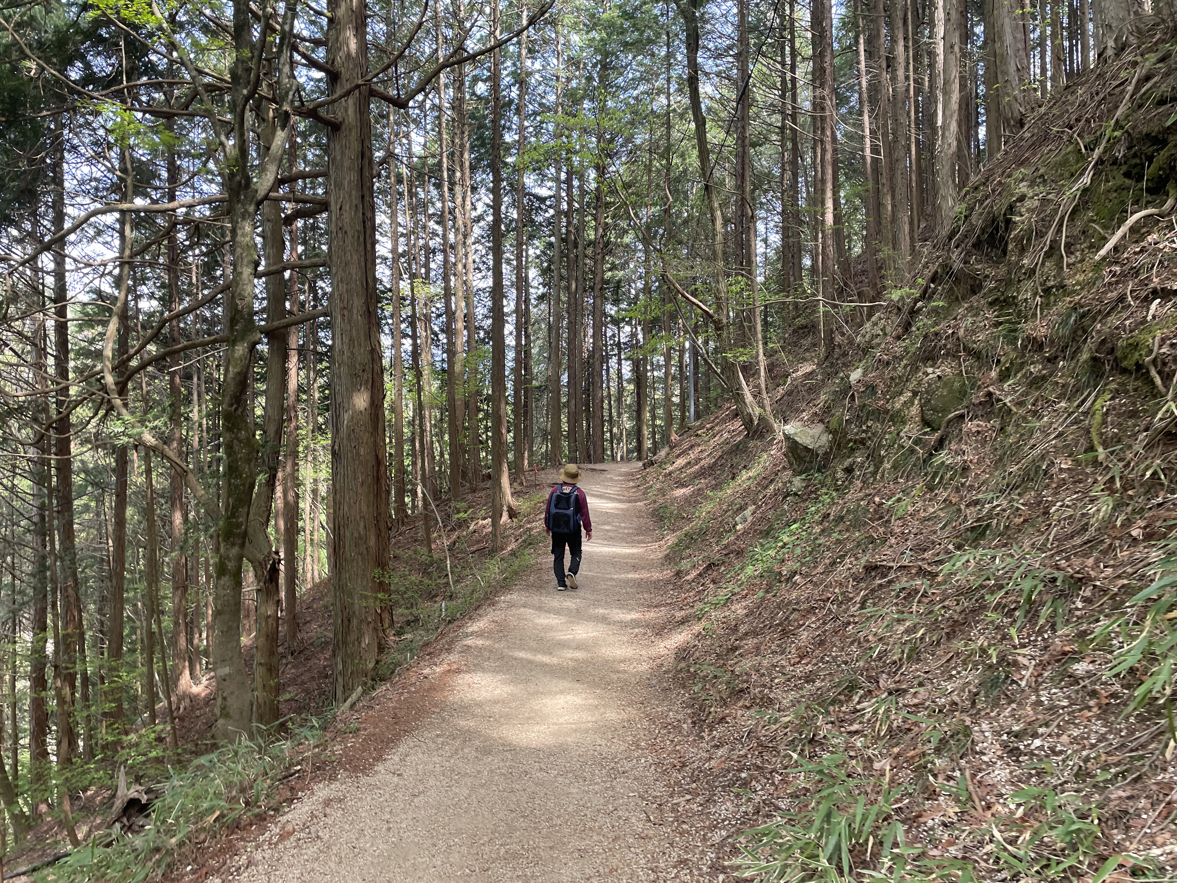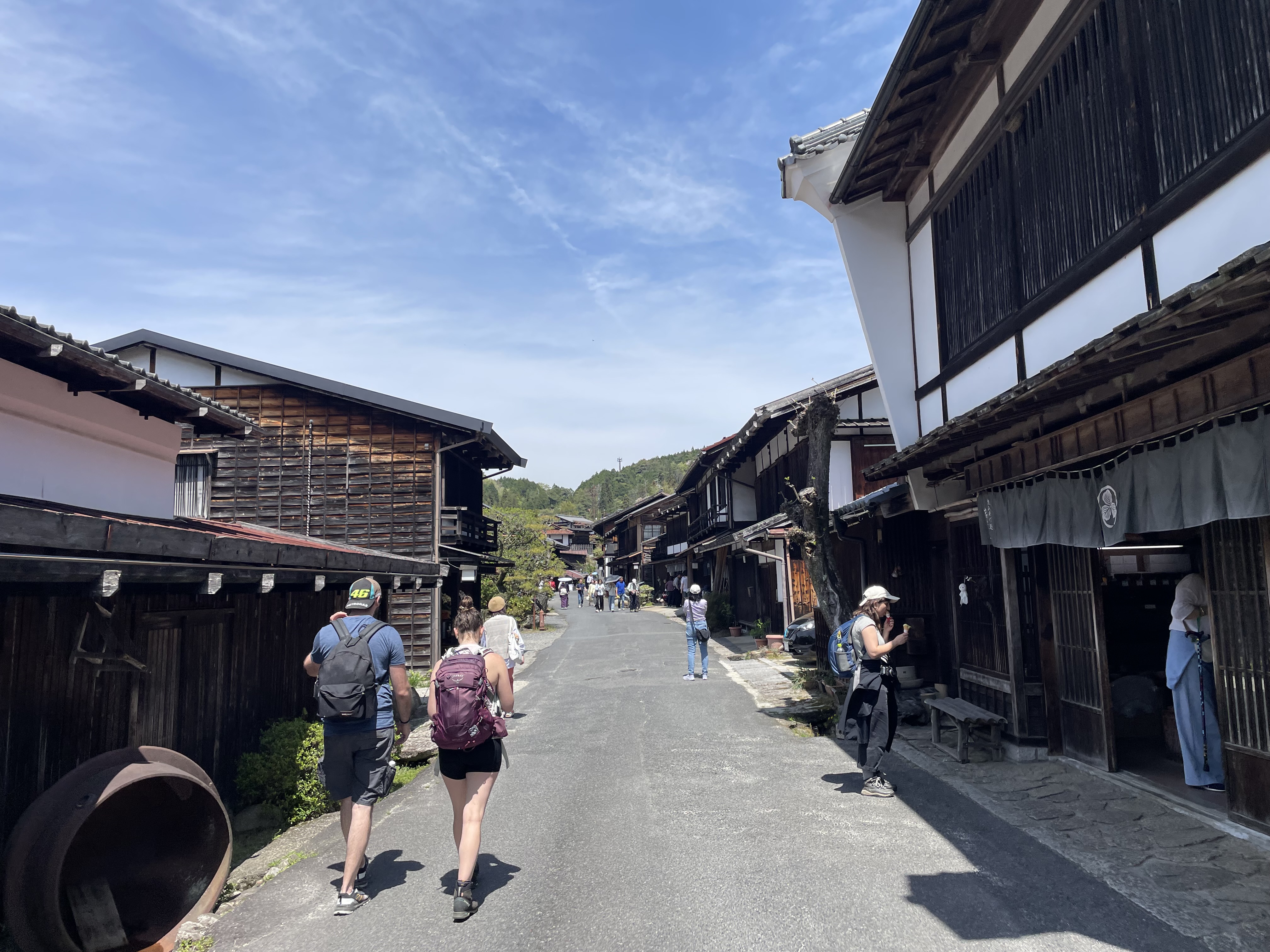 サムライロード(馬籠→妻籠)を犬と行く - Category - ちいさなたび 4月中旬の日曜日。犬も歩けそうなところということで、中山道の馬籠宿から妻籠宿までの通称「サムライロード」を歩いてみた。8時半過ぎに馬籠の駐車場に車を停め、坂道を歩きだす。犬がちょっと疲れたかなと思えば、かごに入れ男滝女滝も寄って、12時44分のバスで馬籠まで戻った。天気も良くて半袖でも暑い陽気。犬も疲れたが俺たちも心地よい一日だった。