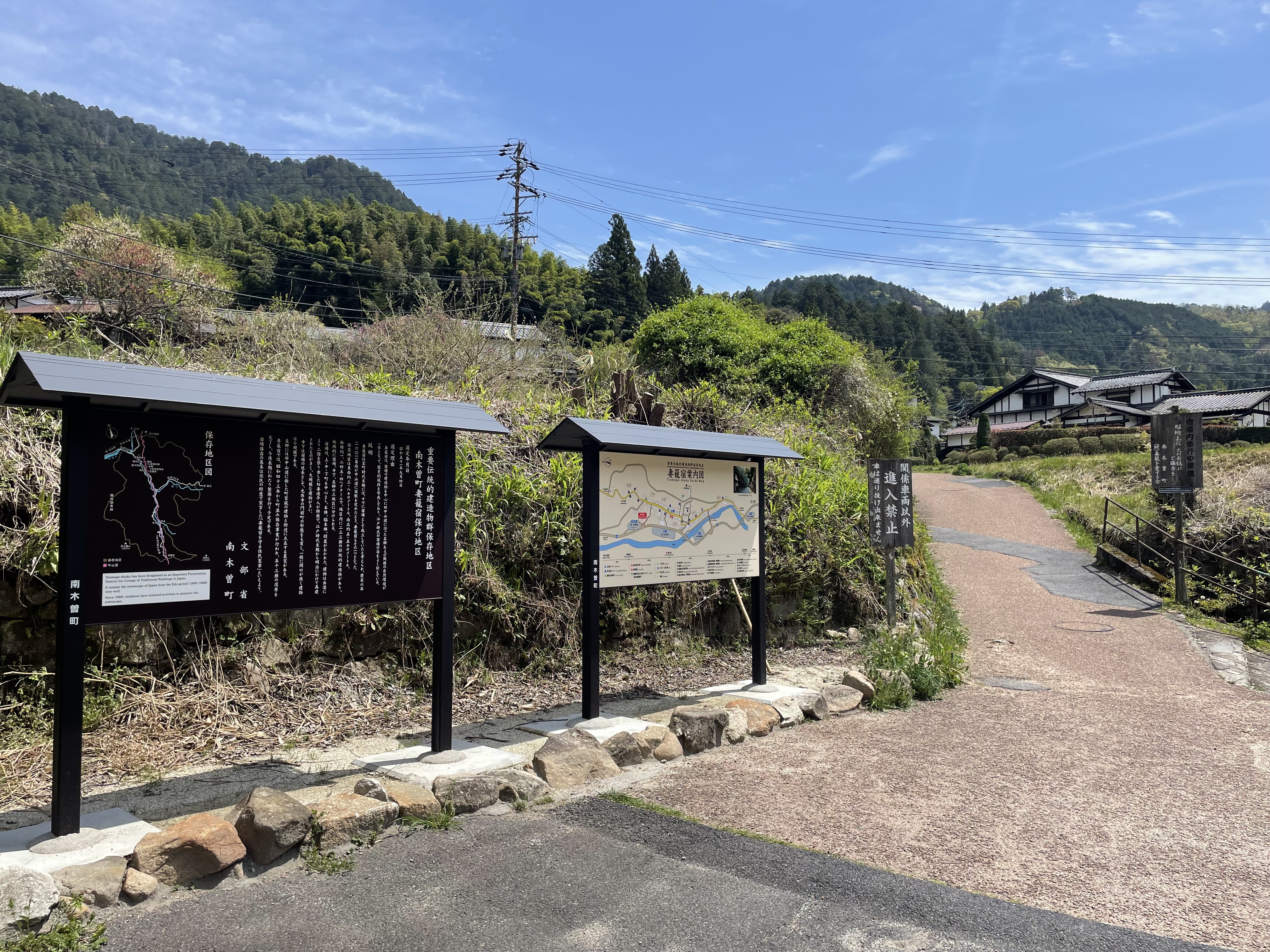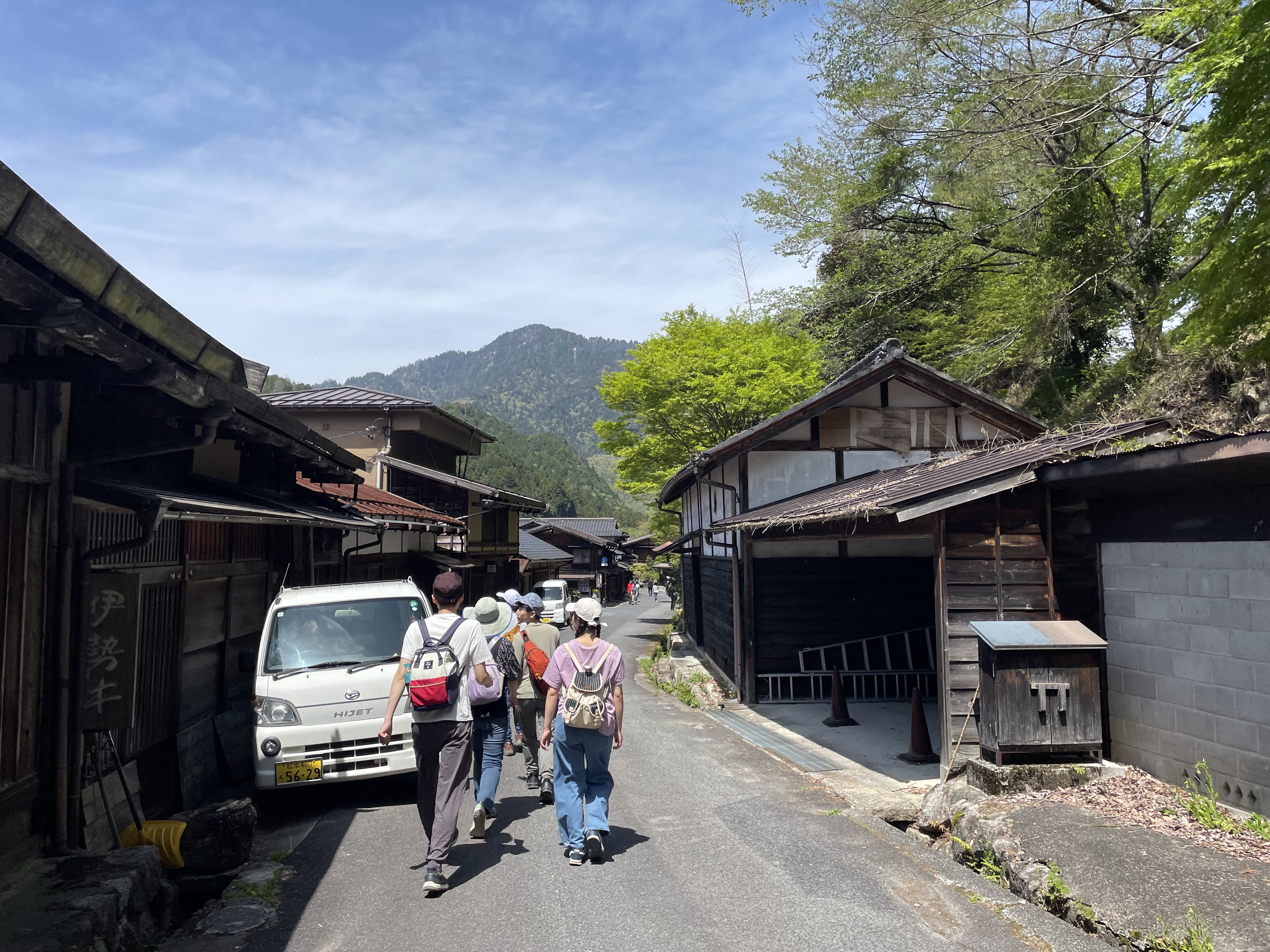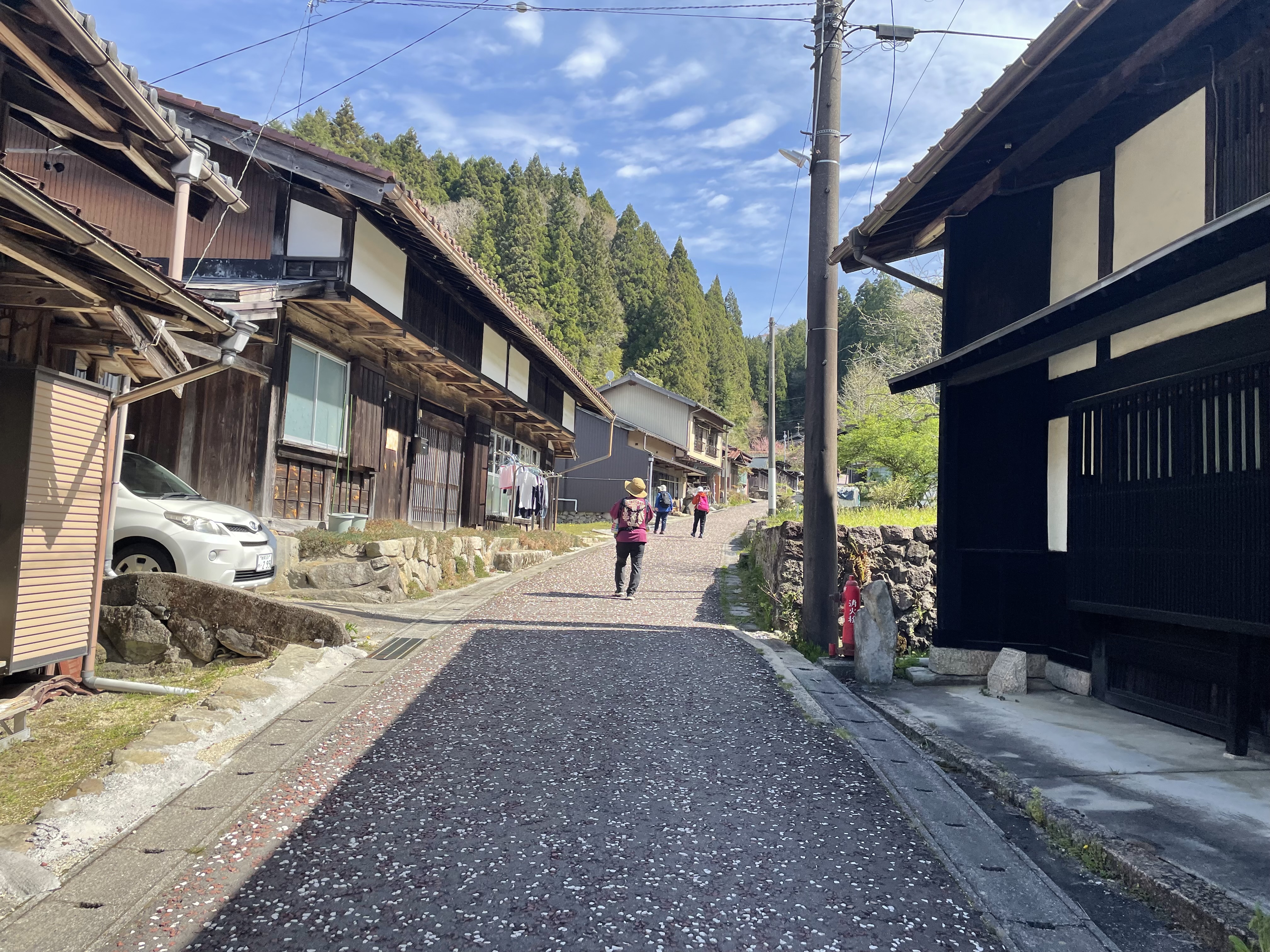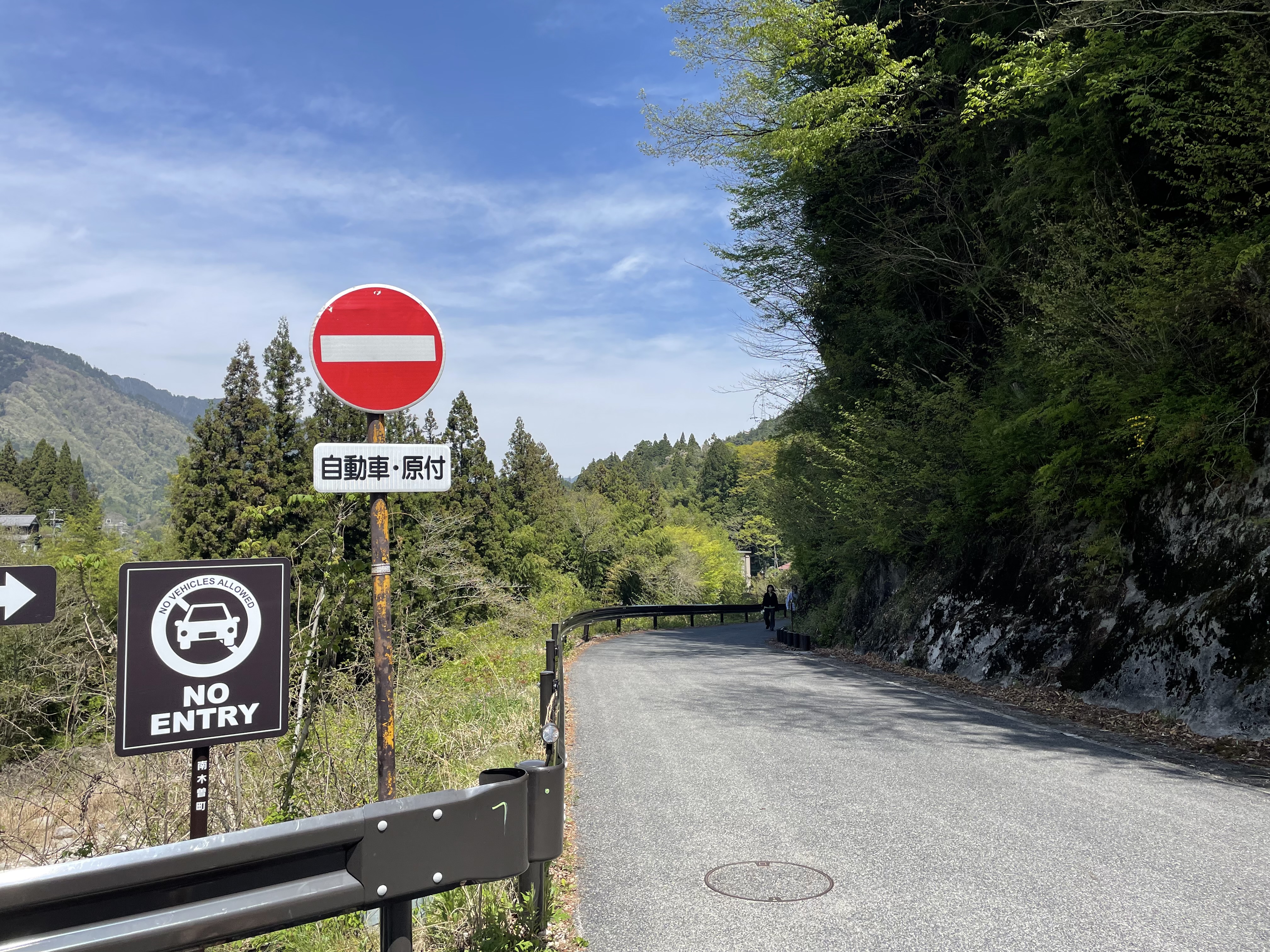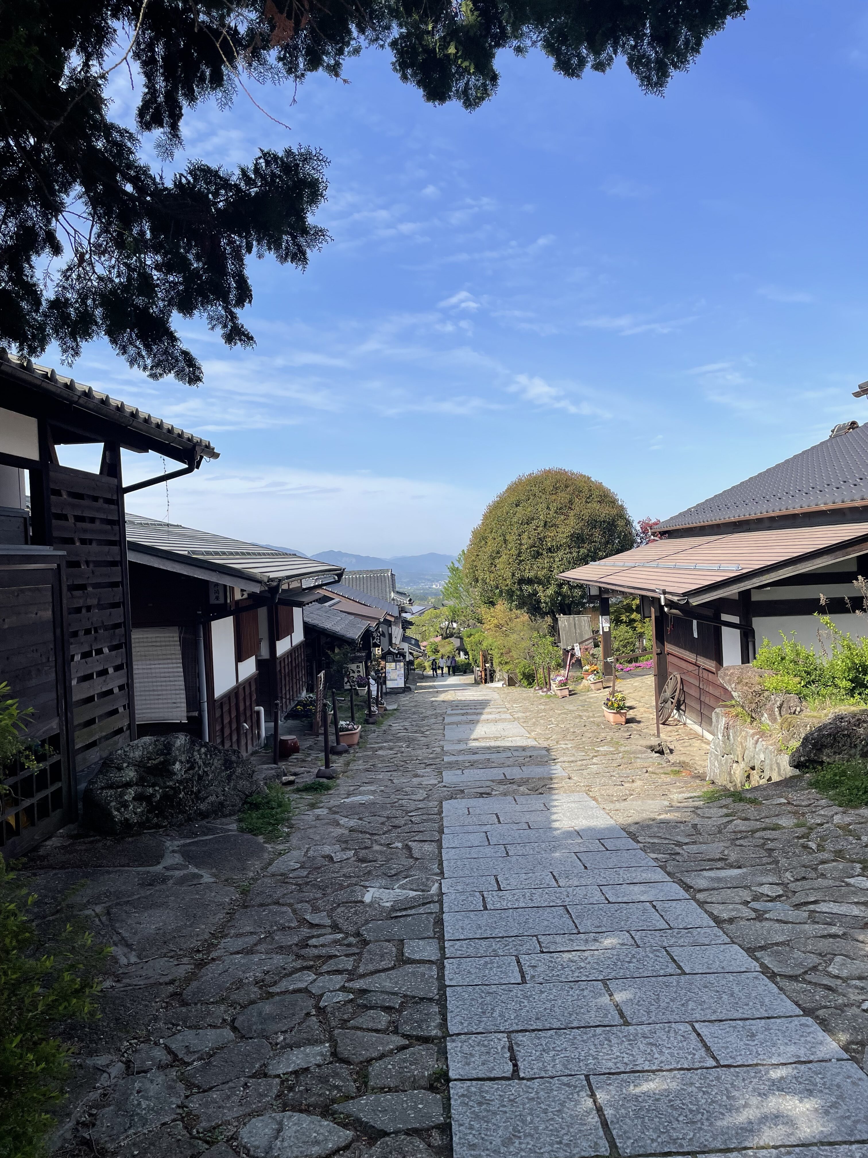 サムライロード(馬籠→妻籠)を犬と行く - Category - ちいさなたび 4月中旬の日曜日。犬も歩けそうなところということで、中山道の馬籠宿から妻籠宿までの通称「サムライロード」を歩いてみた。8時半過ぎに馬籠の駐車場に車を停め、坂道を歩きだす。犬がちょっと疲れたかなと思えば、かごに入れ男滝女滝も寄って、12時44分のバスで馬籠まで戻った。天気も良くて半袖でも暑い陽気。犬も疲れたが俺たちも心地よい一日だった。