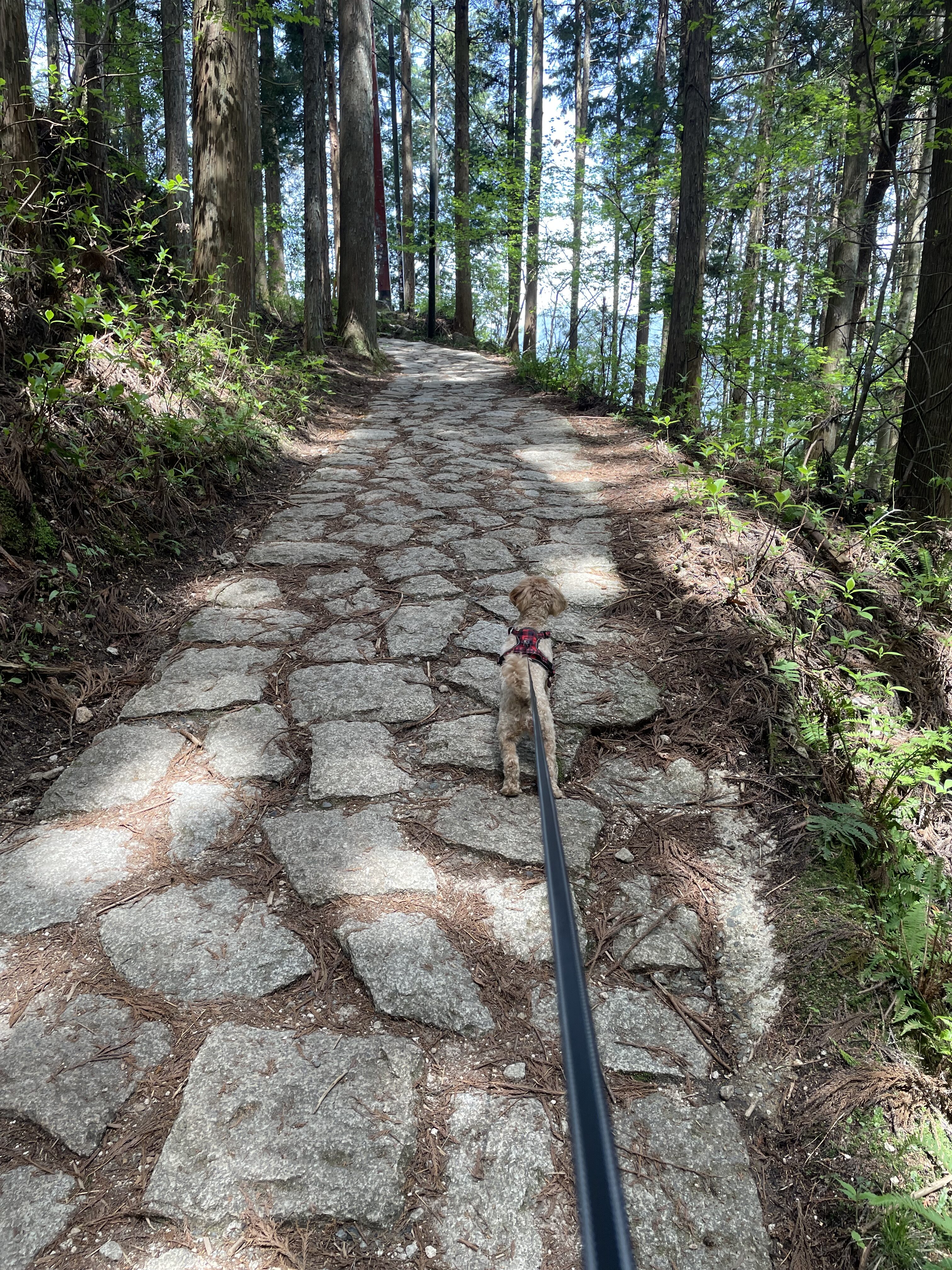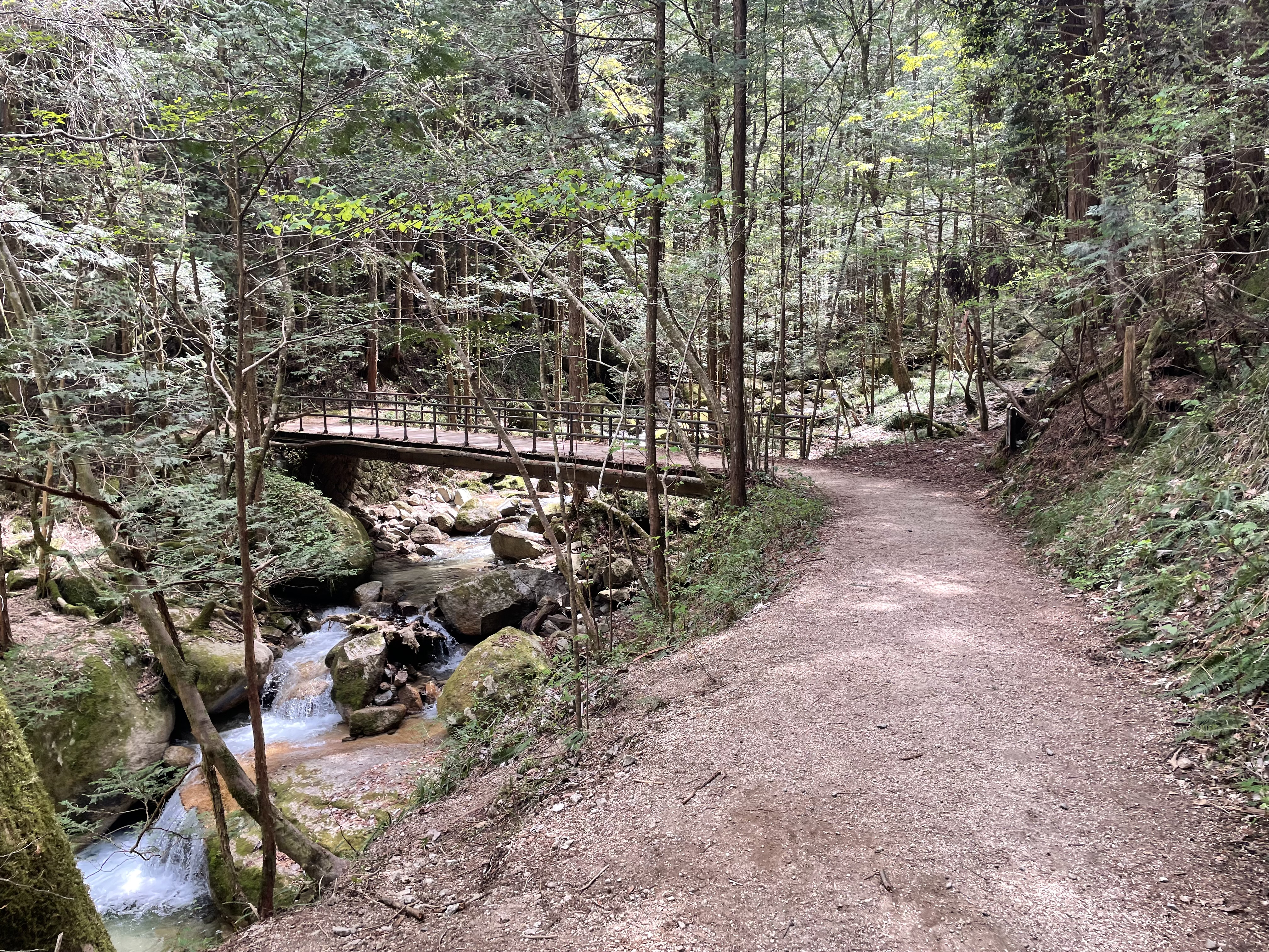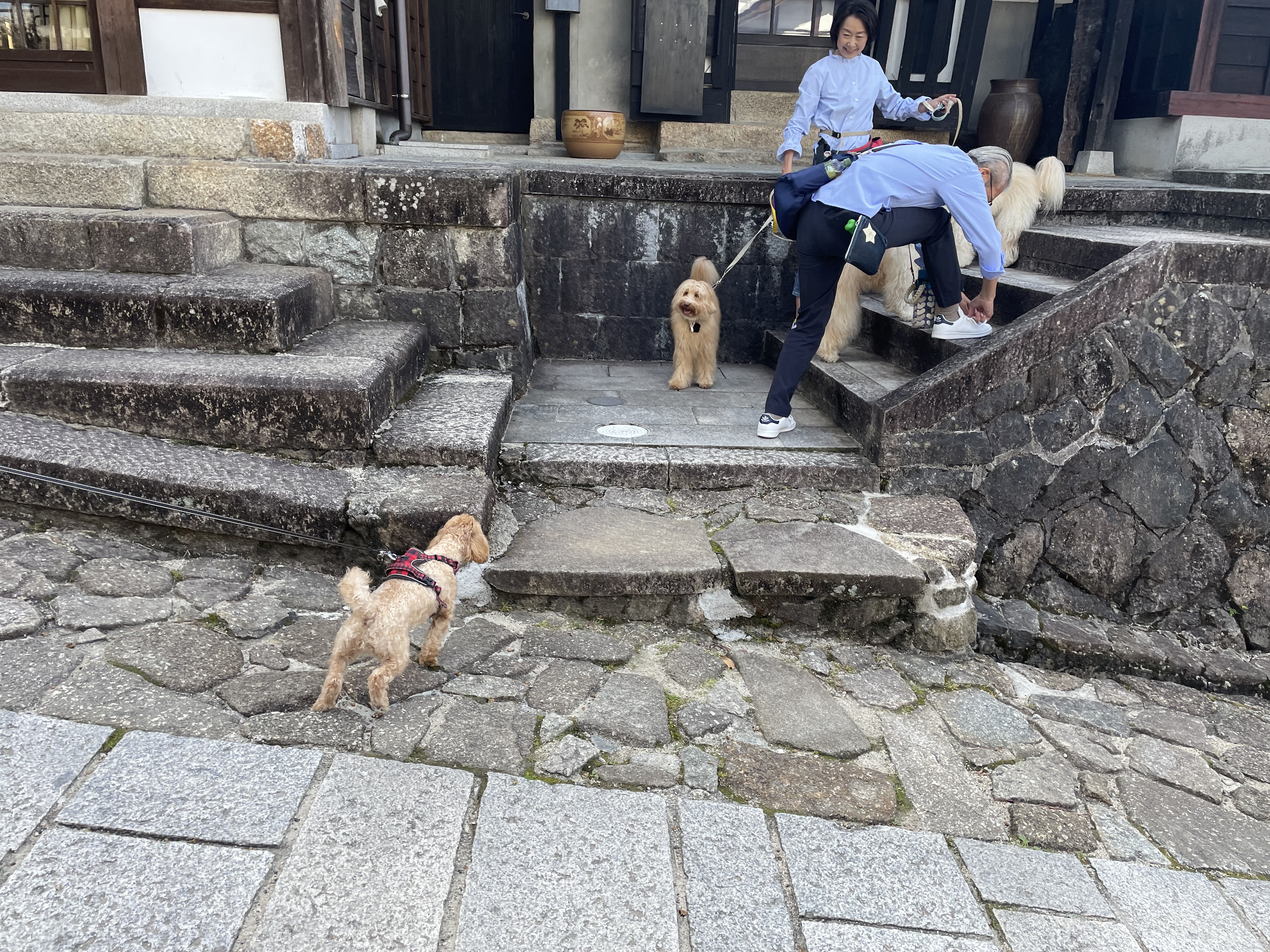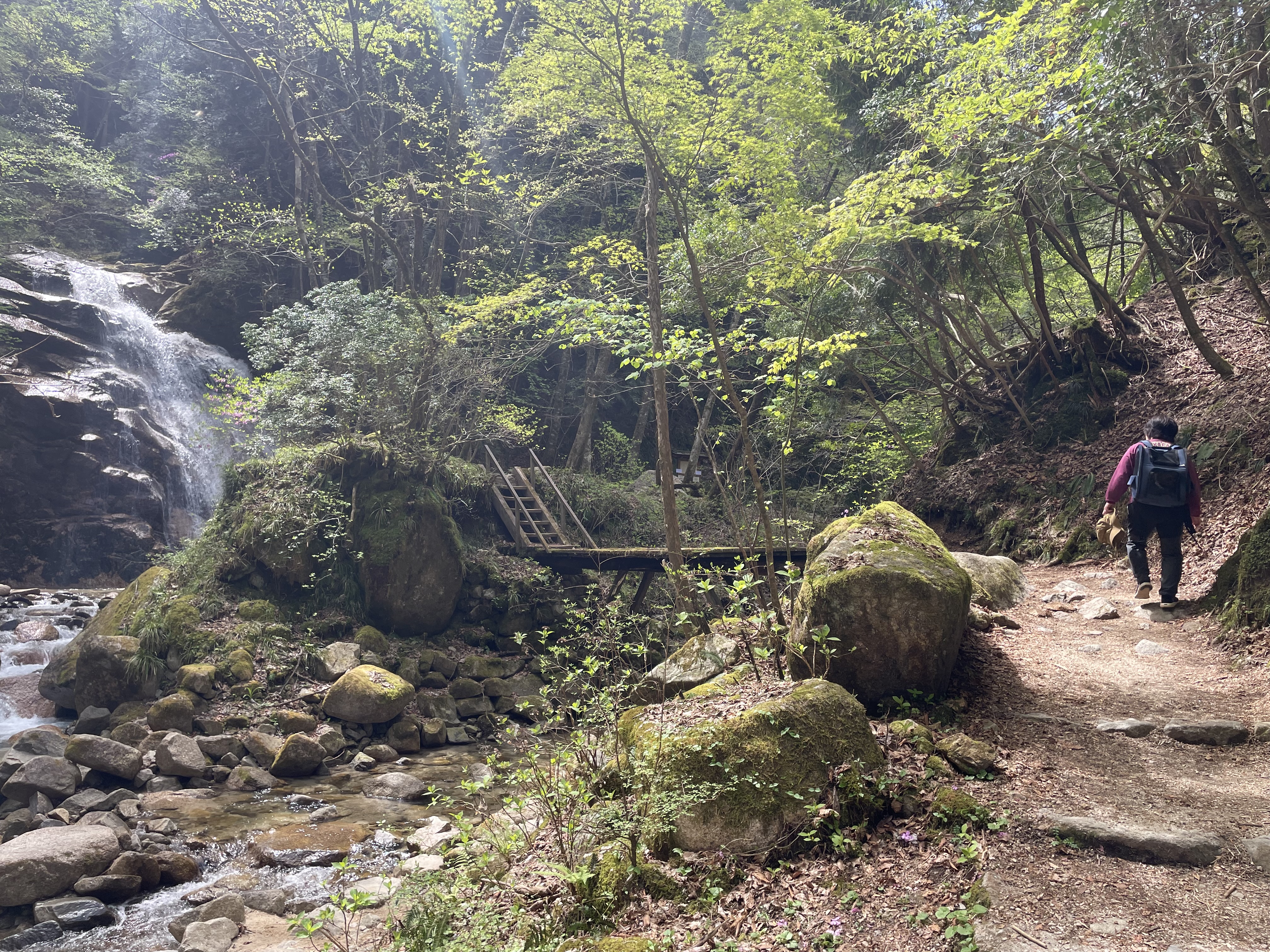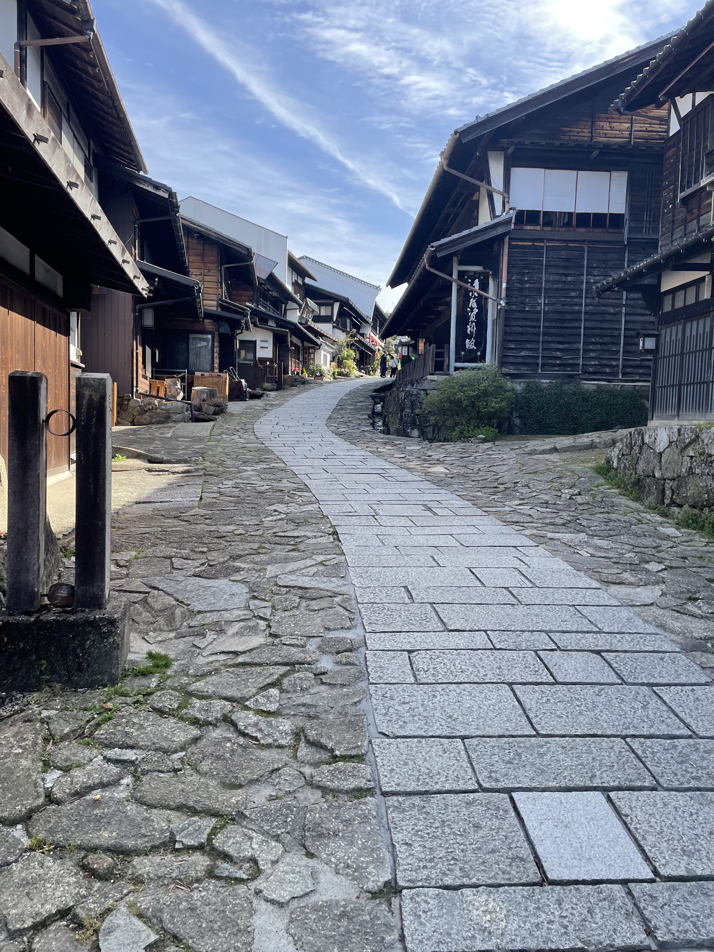 サムライロード(馬籠→妻籠)を犬と行く - Category - ちいさなたび 4月中旬の日曜日。犬も歩けそうなところということで、中山道の馬籠宿から妻籠宿までの通称「サムライロード」を歩いてみた。8時半過ぎに馬籠の駐車場に車を停め、坂道を歩きだす。犬がちょっと疲れたかなと思えば、かごに入れ男滝女滝も寄って、12時44分のバスで馬籠まで戻った。天気も良くて半袖でも暑い陽気。犬も疲れたが俺たちも心地よい一日だった。
